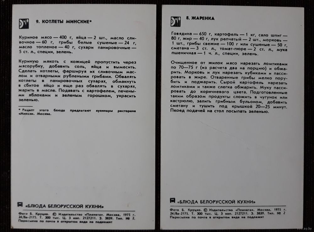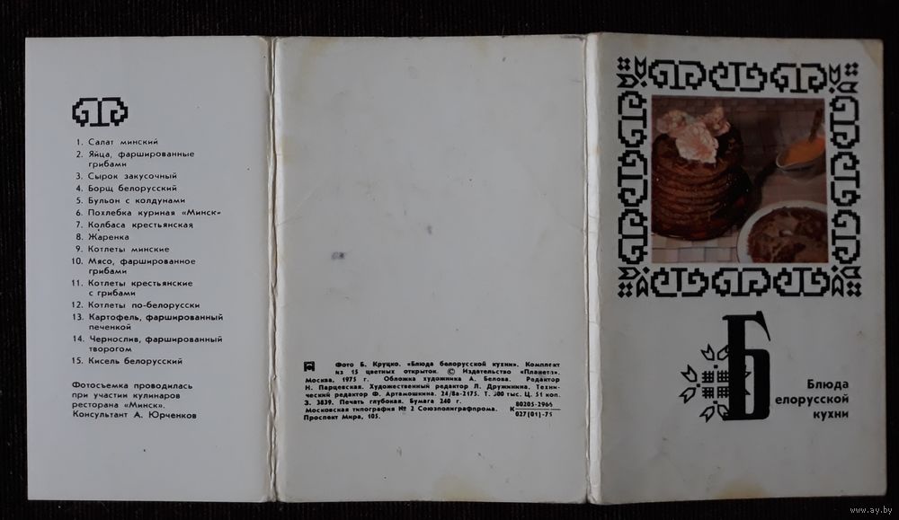 Комплект из 15 открыток (полный) Блюда белорусской кухни 1975