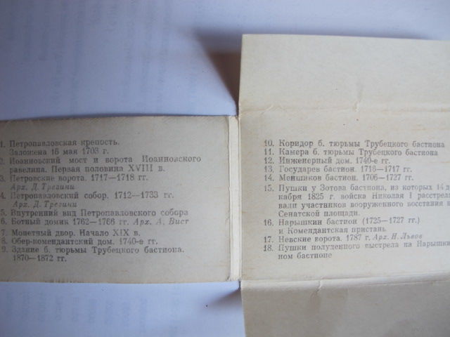 Комплект из 18 черно-белых миниоткрыток с видами Петропавловской крепости (1985 г.)