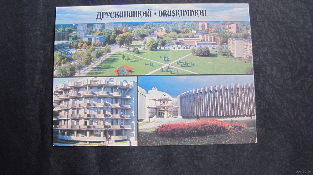 Комплект из 19 черно-белых открыток с купонами с видами Друскининкая (1961 г.) + открытка 1987 г.