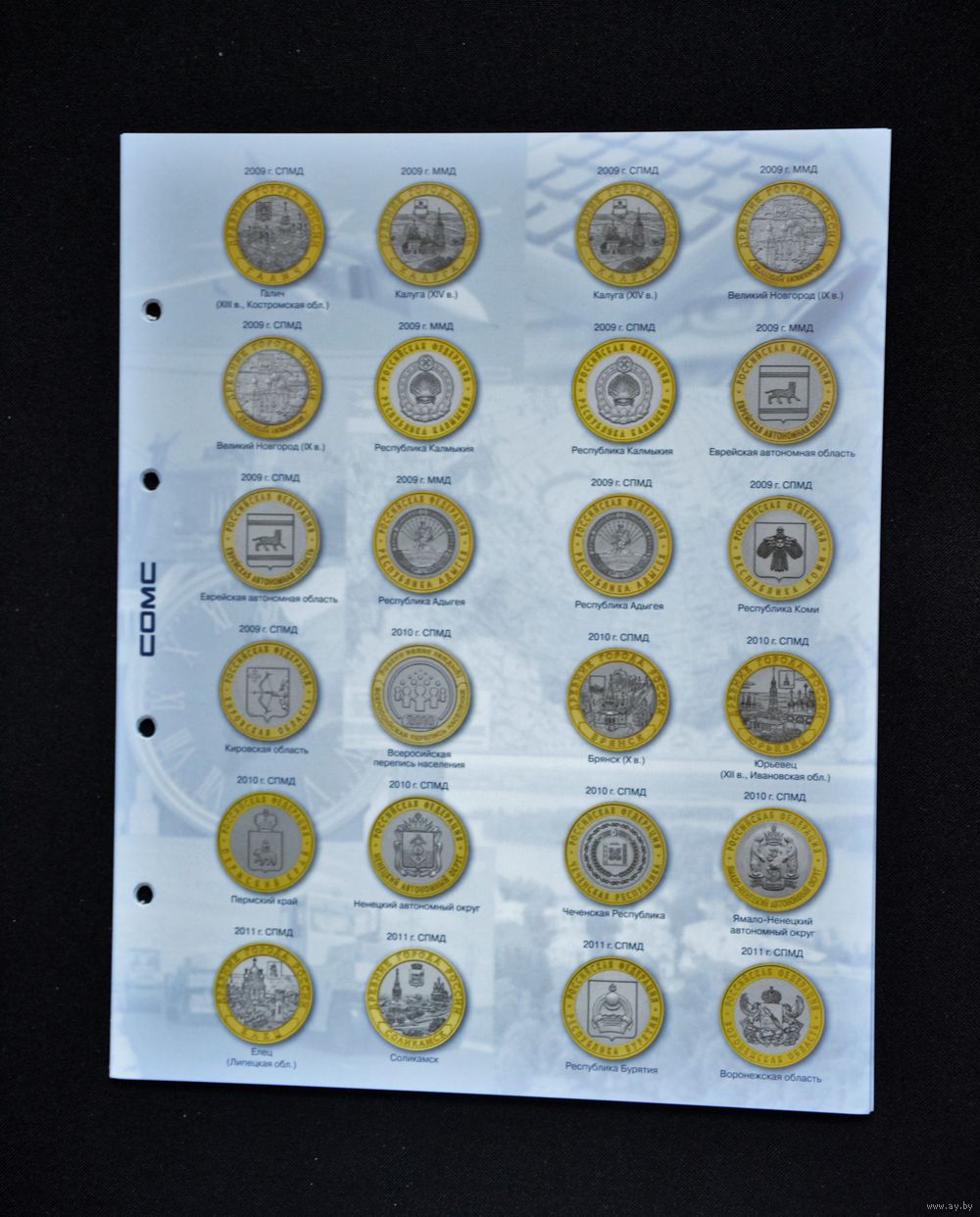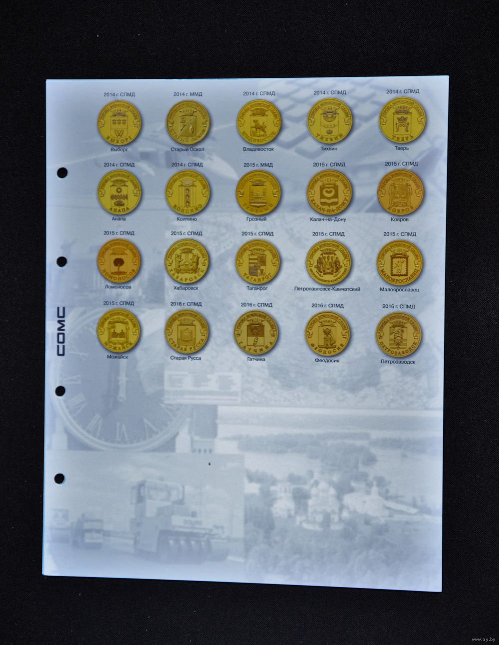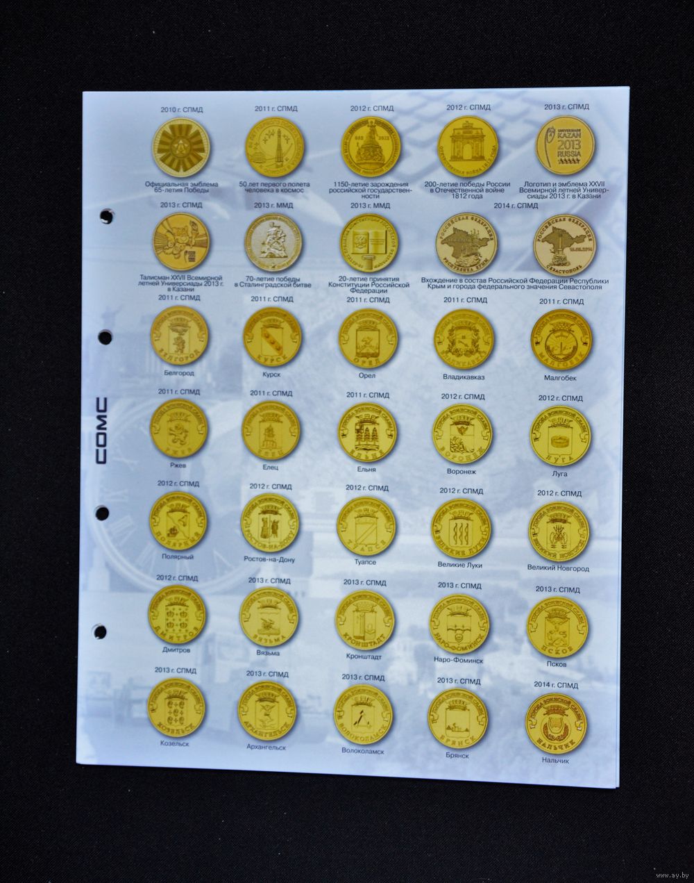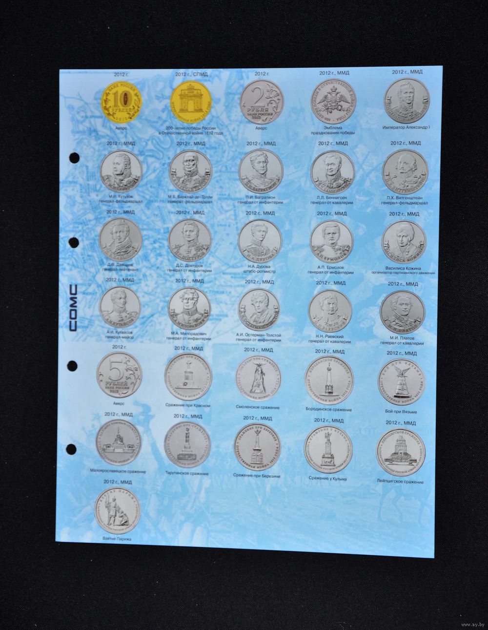 Для размещения 10 рублевых юбилейных монет, серии "Города Воинской Славы ", "200-летию победы в Отечественной войне 1812 г.