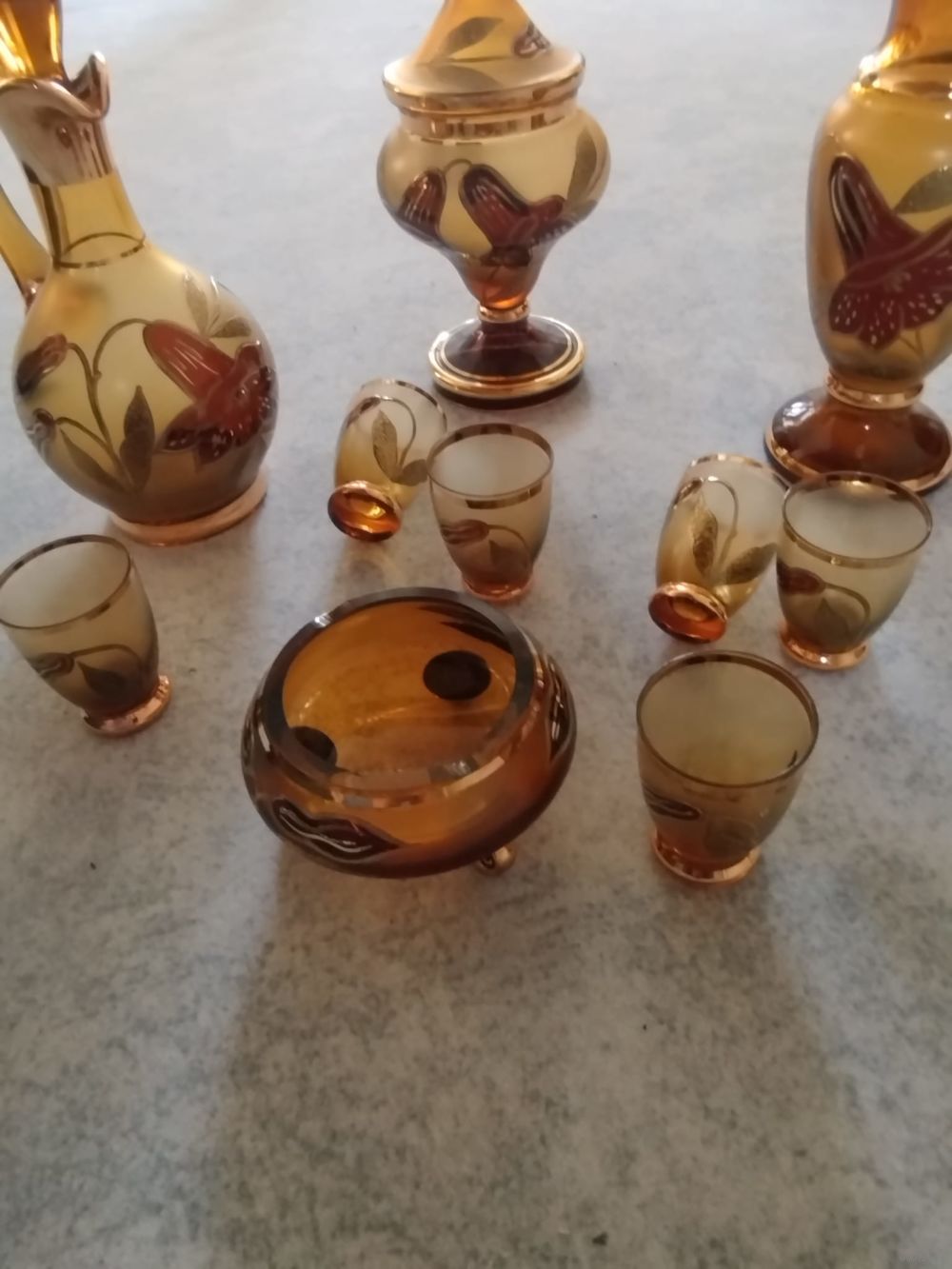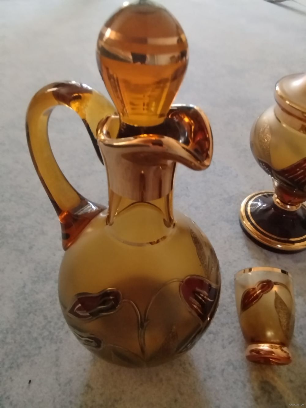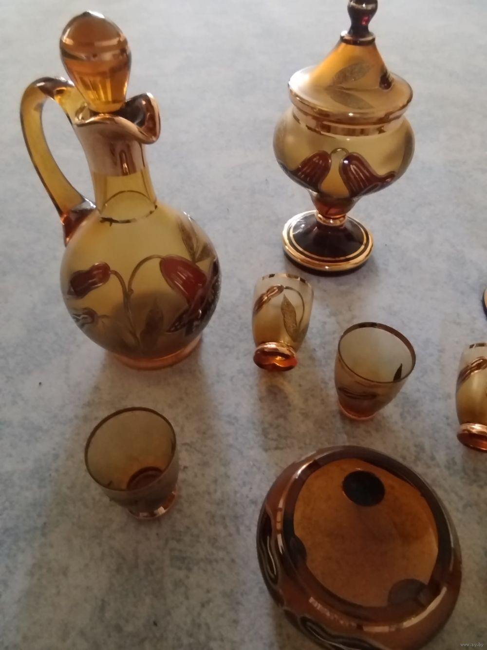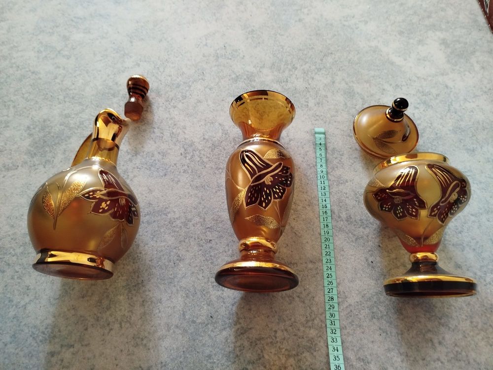 · общая высота 25 см. · диаметр брюшка до 12,5 см. 100% новый. Ваза 6-ть стаканов графин и кубок (Ваза для конфет 20 см с крышкой ) плюс отличная пепельница. Очень редкий дорогой комплект. Уверен станет украшением в любом доме.