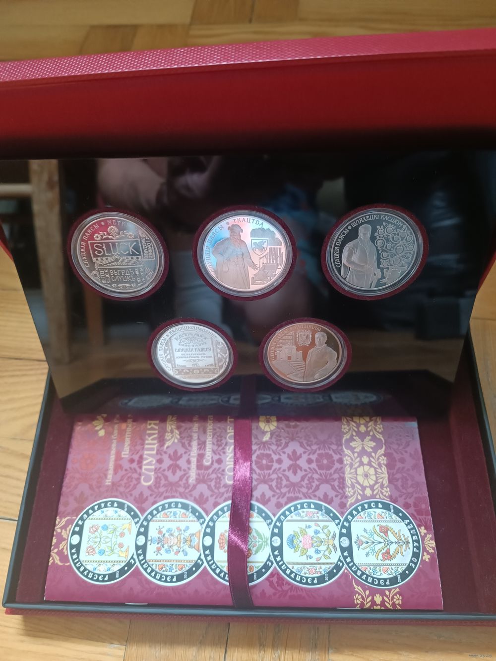 | 5 медно-никелевых монет: "Метки", "Коллекционирование", "Ткачество", "Костюм шляхтича", "Радзивиллы" в оригинальном футляре. | |