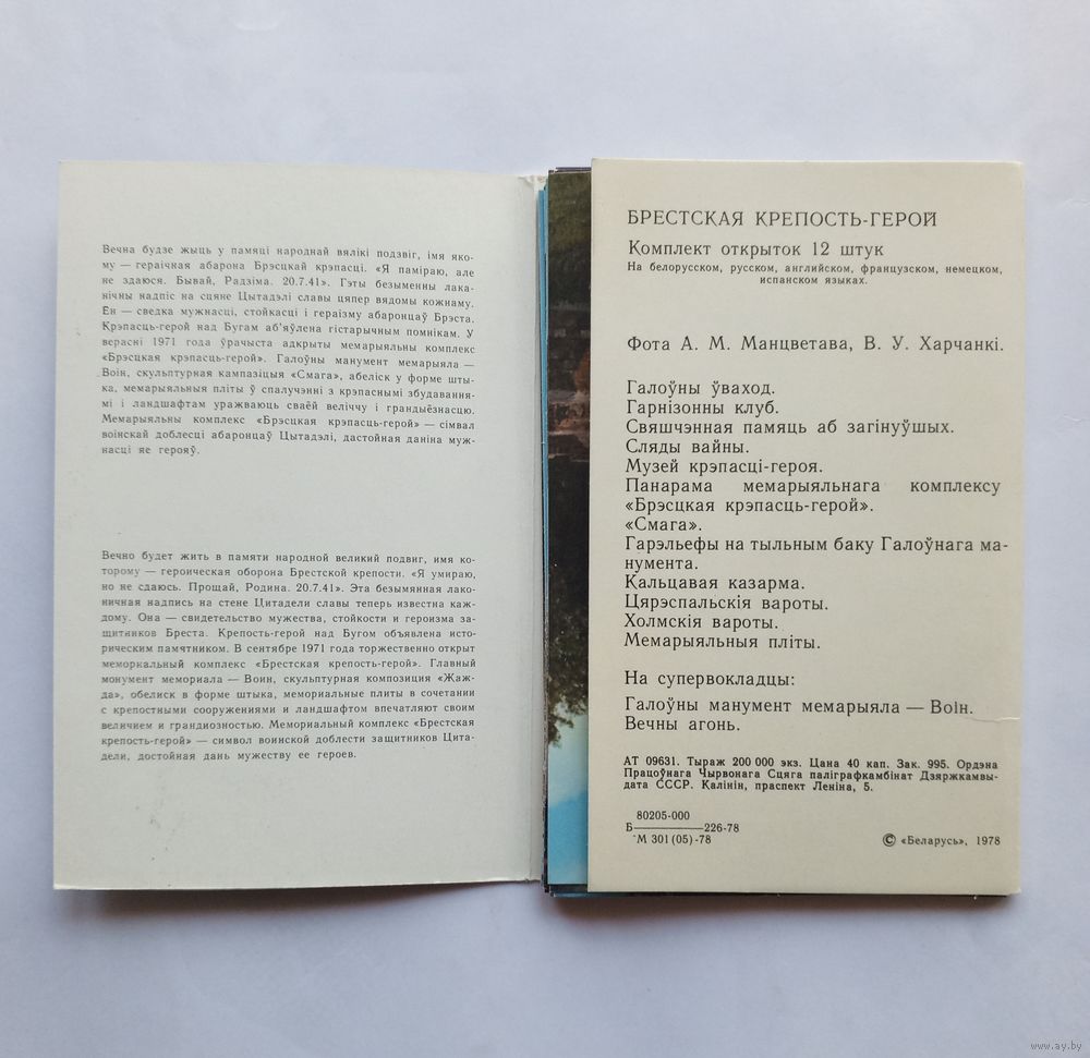 Комплект открыток "БРЭСЦКАЯ КРЭПАСЦЬ-ГЕРОЙ", Минск, 1978 год.