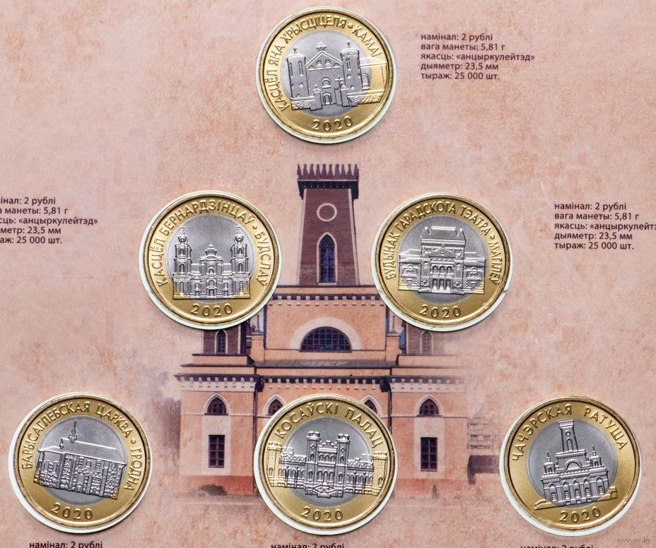 Комплект памятных монет серии "Архітэктурная спадчына Беларусі" (2020)