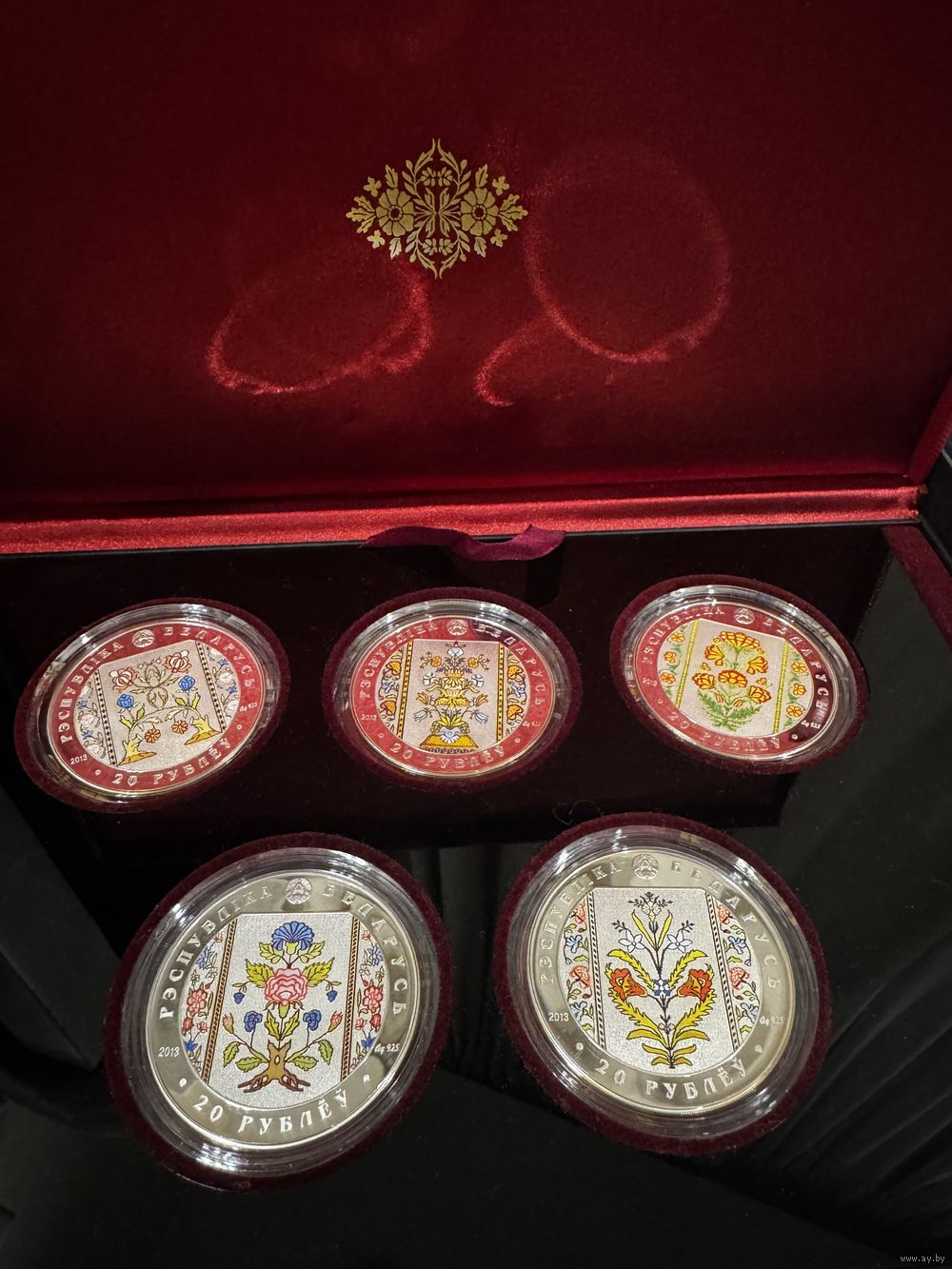 Комплект памятных монет в оригинальном футляре "Слуцкие пояса", 20 РУБЛЕЙ, СЕРЕБРО.