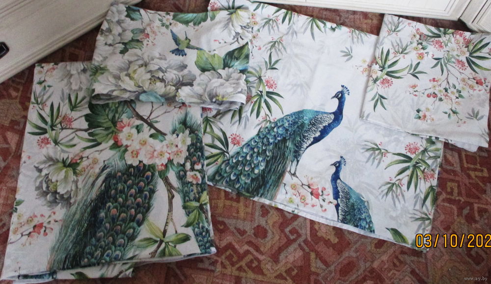 С павлинами. Пододеяльник на молнии(не работает),2 наволочки на молнии рабочей 62х62см,простыня