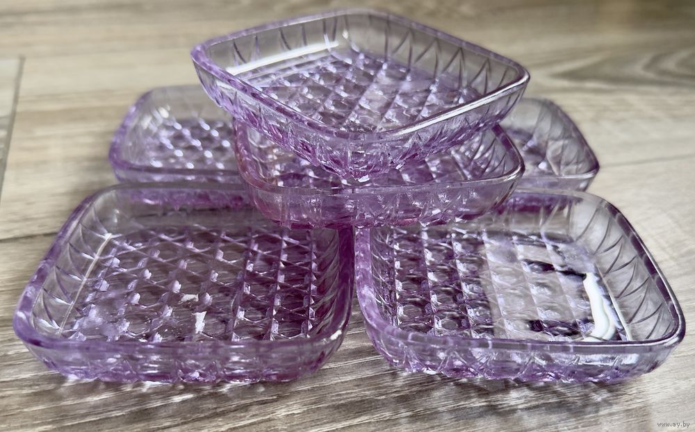 Комплект тарелок-розеток для десерта, из прессованного стекла периода СССР цвета Александрит размер 8/8 см.