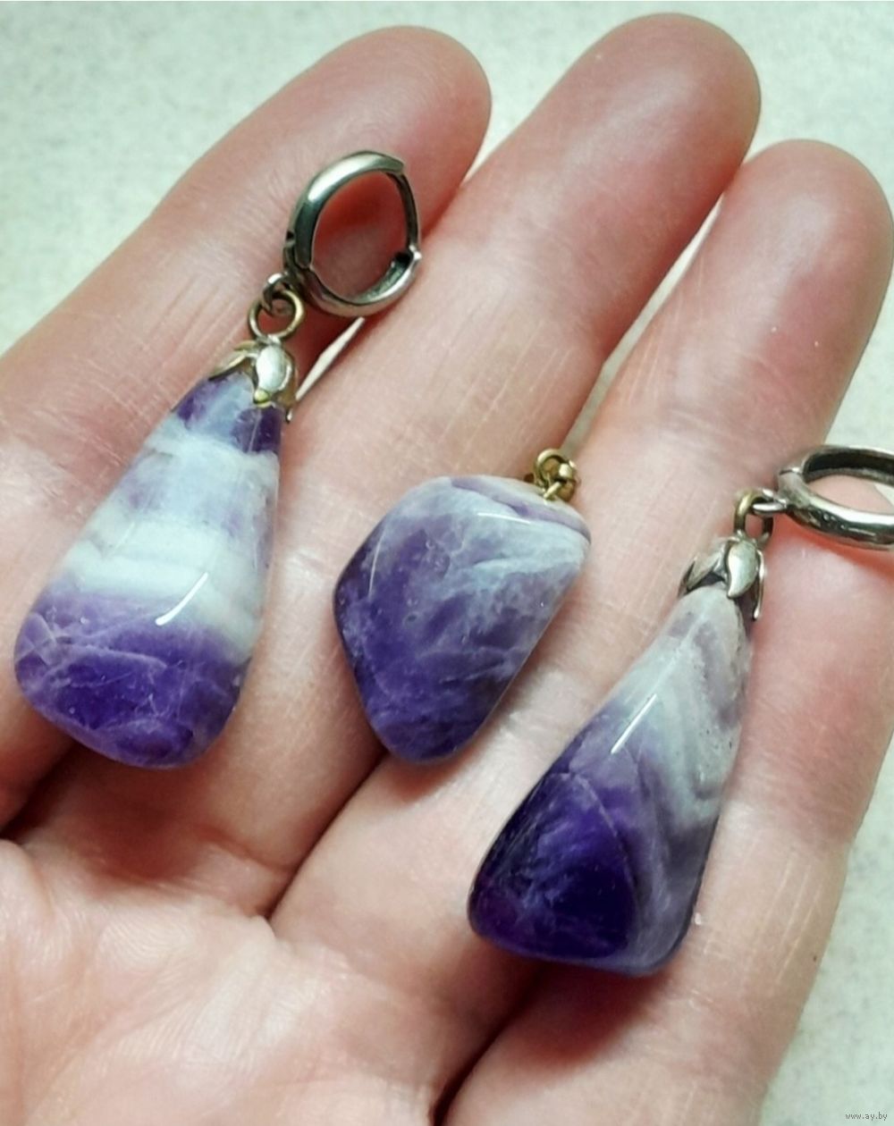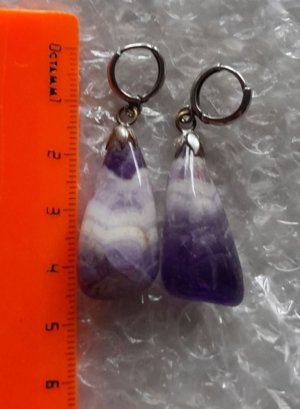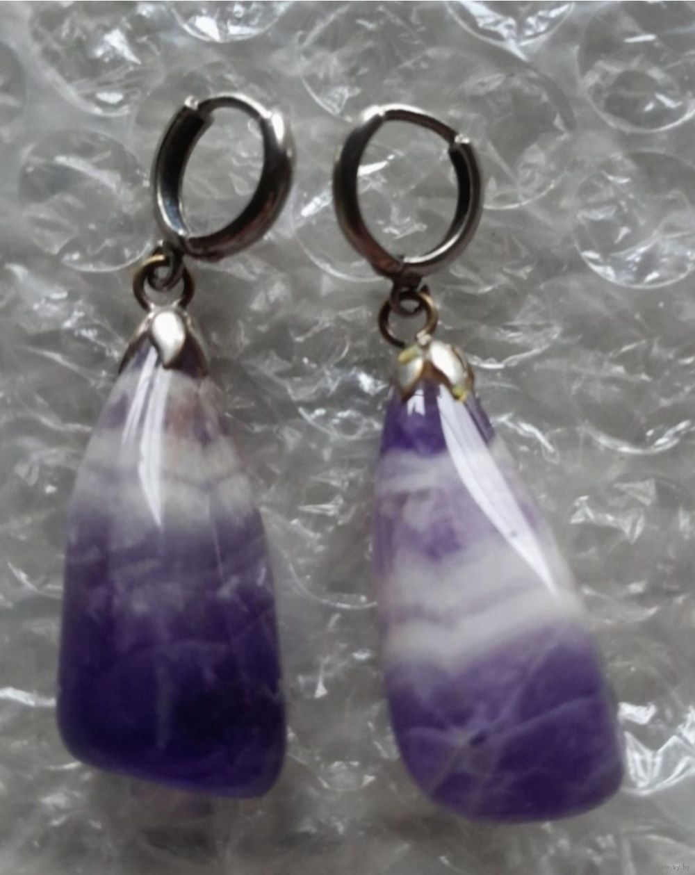 Серьги крупные из Аметиста с очень красивым рисунком. Размер - 4.8 см.