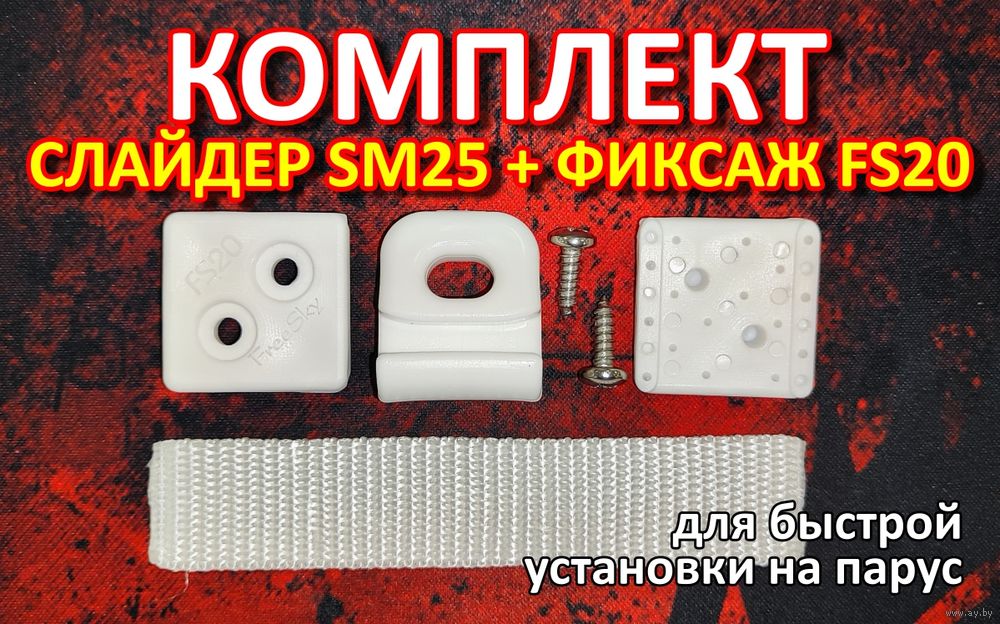 Комплектация: Слайдер FreeSky SM25, Крепеж FreeSky FS20 из 2х деталей, два самореза из морской нержавеющей стали ANSI 316, Лавсановая лента 20х120мм.