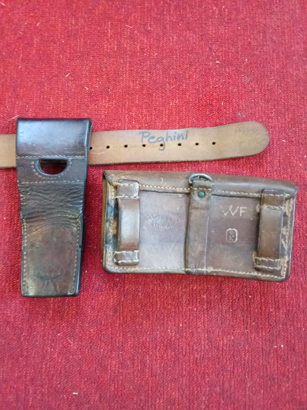 Комплект снаряжения состоит из поясного ремня, патронного подсумка и подвеса для ш.н.. Коллекционное состояние, гарантия оригинальности.