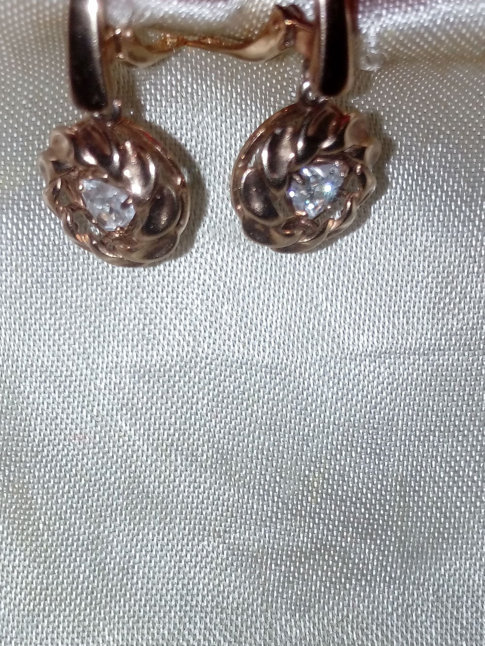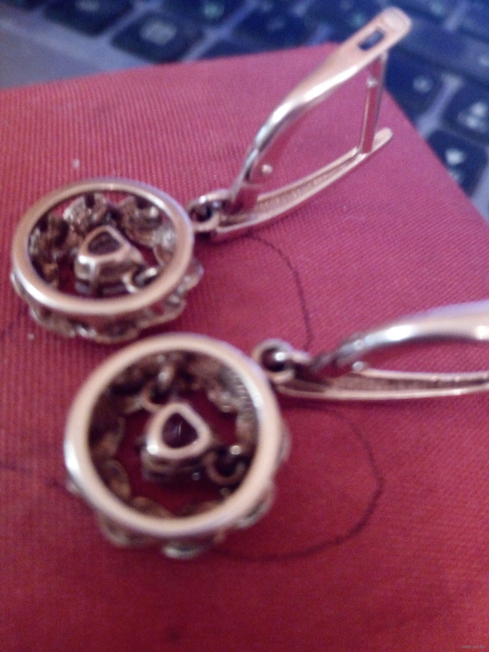 очень красивый комплект 3 предмета,серьги и подвеска. камень в предметах подвижный. замки на серьгах английские. дефектов нет красивой огранки. стерлинг клеймо пробирной инспекции. позолота. невозможен возврат товара после покупки.