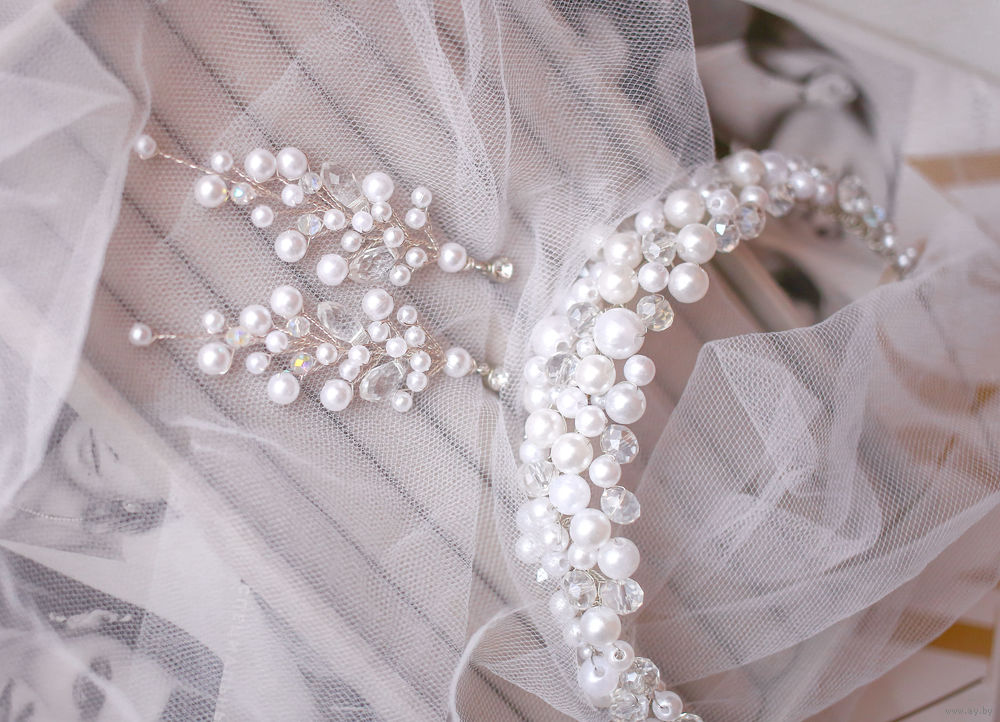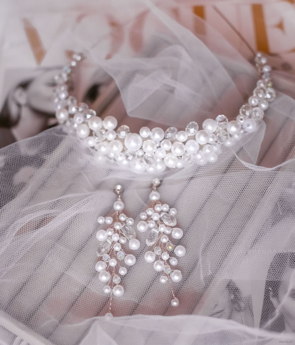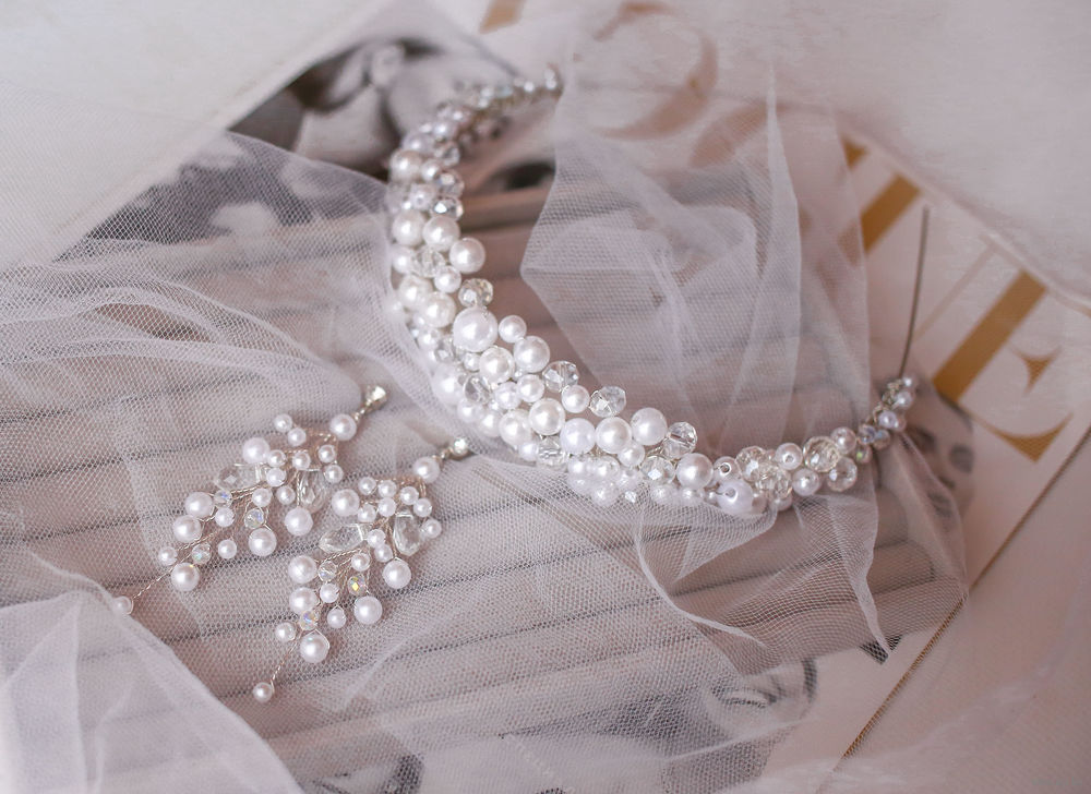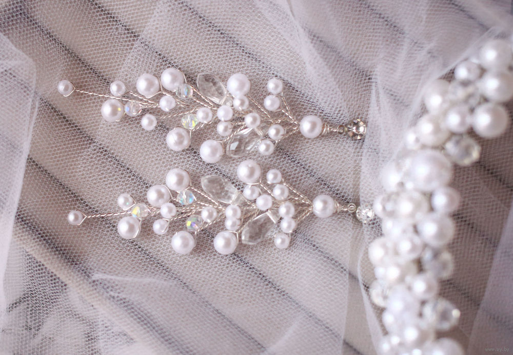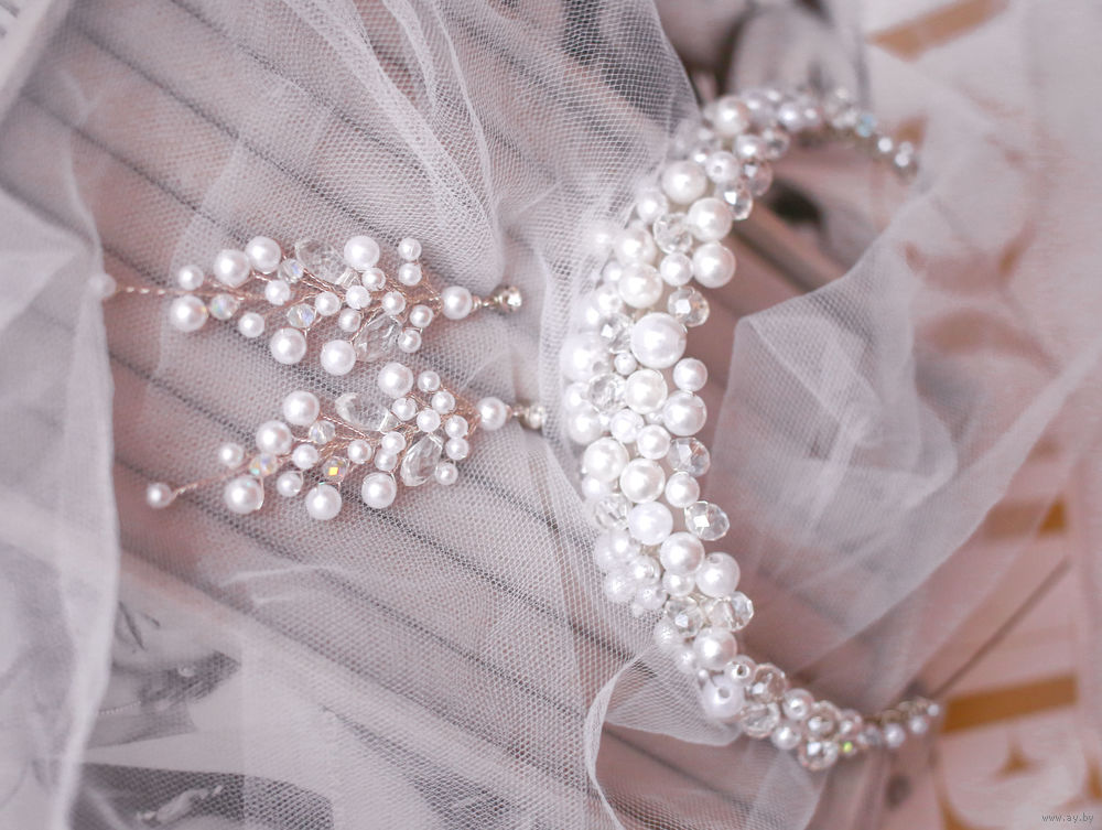 Лёгкий и одновременно густой белоснежный ободок+легкие плетеные серьги.