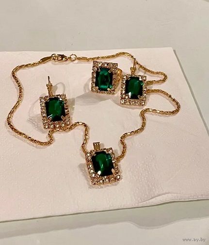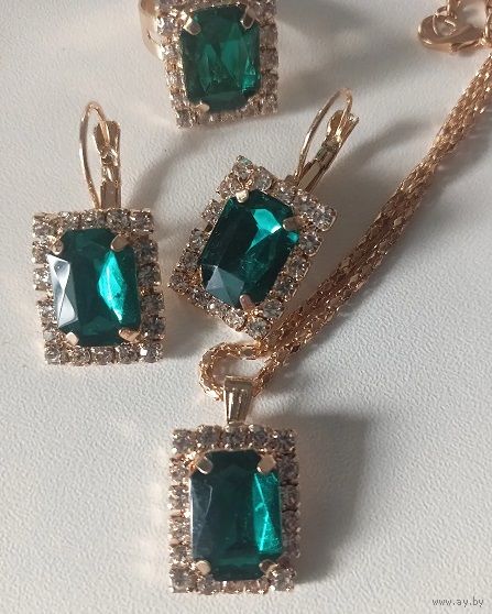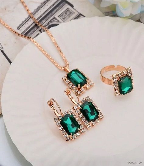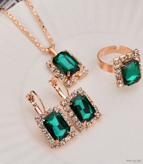 Новый комплект украшений квадрат зеленый (подвеска, серьги, кольцо), серёжки (длина 2,5см) - 2 шт., подвеска на шею 1 шт. (62см длина), кольцо регулируемое (12см длина) 16-19 размеров - 1 шт.