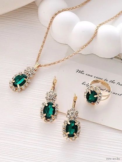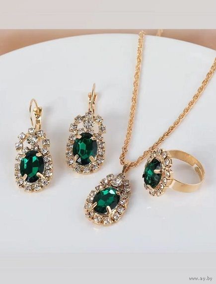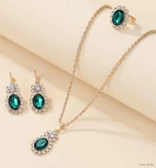 Новый комплект украшений (подвеска, серьги, кольцо), серёжки (длина 3,6см) - 2 шт., подвеска на шею 1 шт. (43см длина), кольцо регулируемое на 16-19 размер - 1 шт.