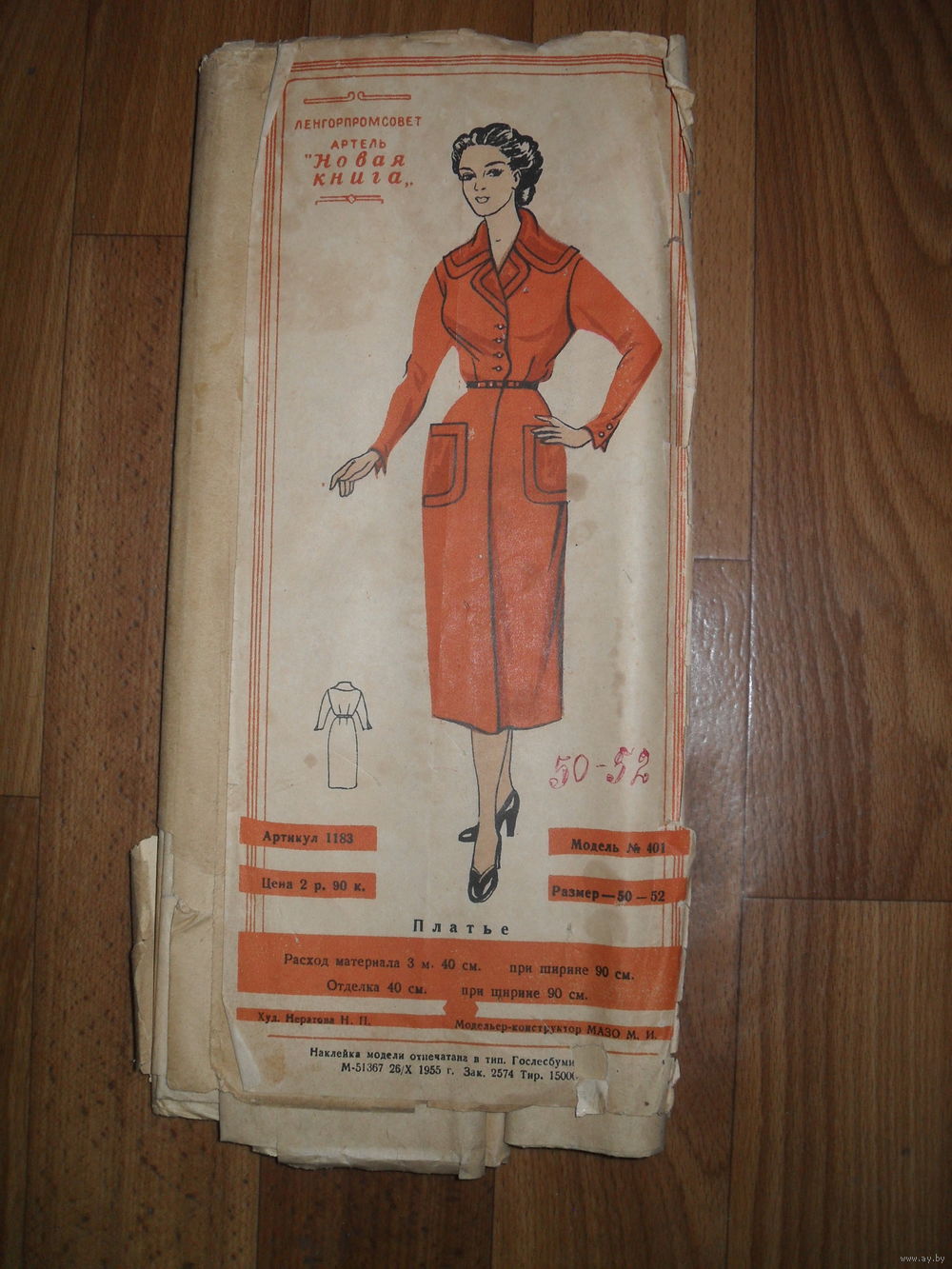 Комплект выкроек в оригинальной упаковке.Артель "Новая книга".1955.