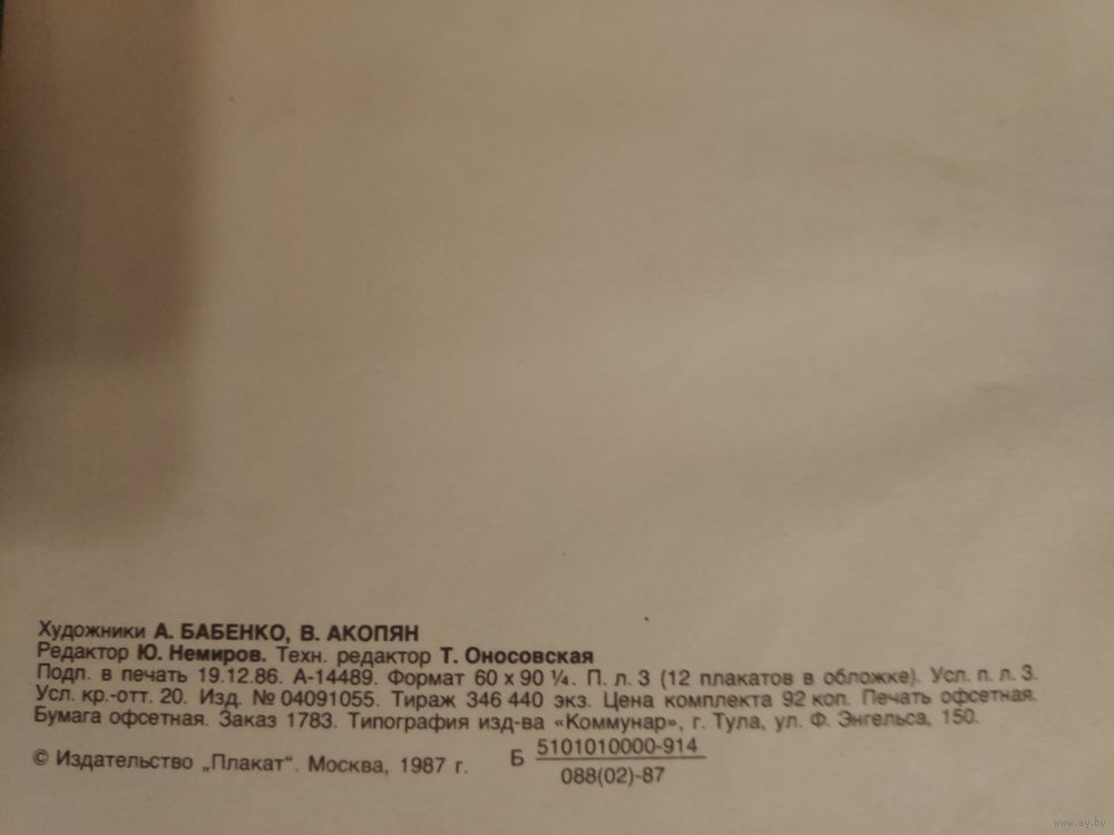 Изготовитель Акопян В., художник. Издательство "Плакат"