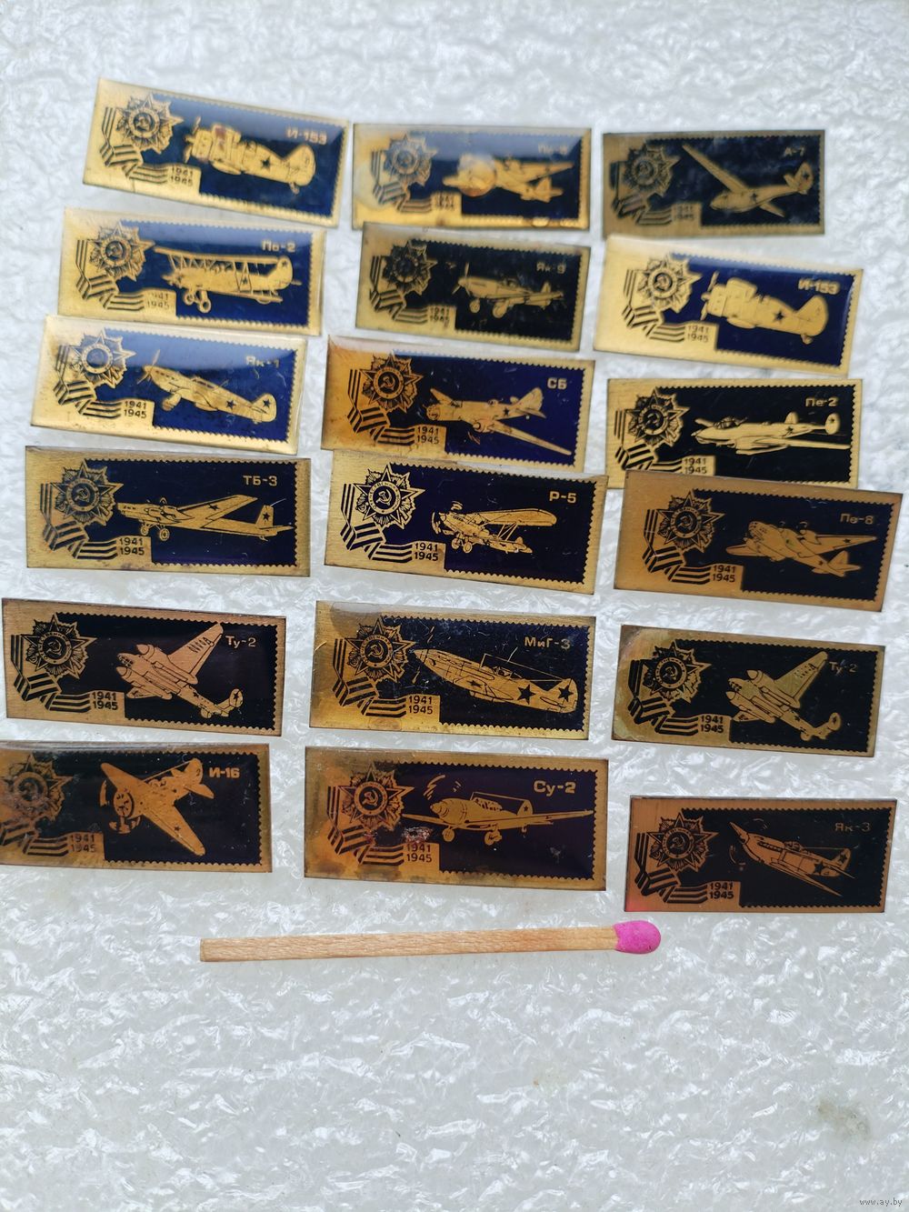 Комплект значков 18 шт. Военные самолёты ВОВ 1941-1945 гг.. тяжелый