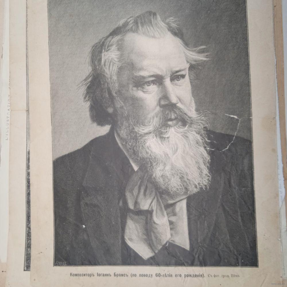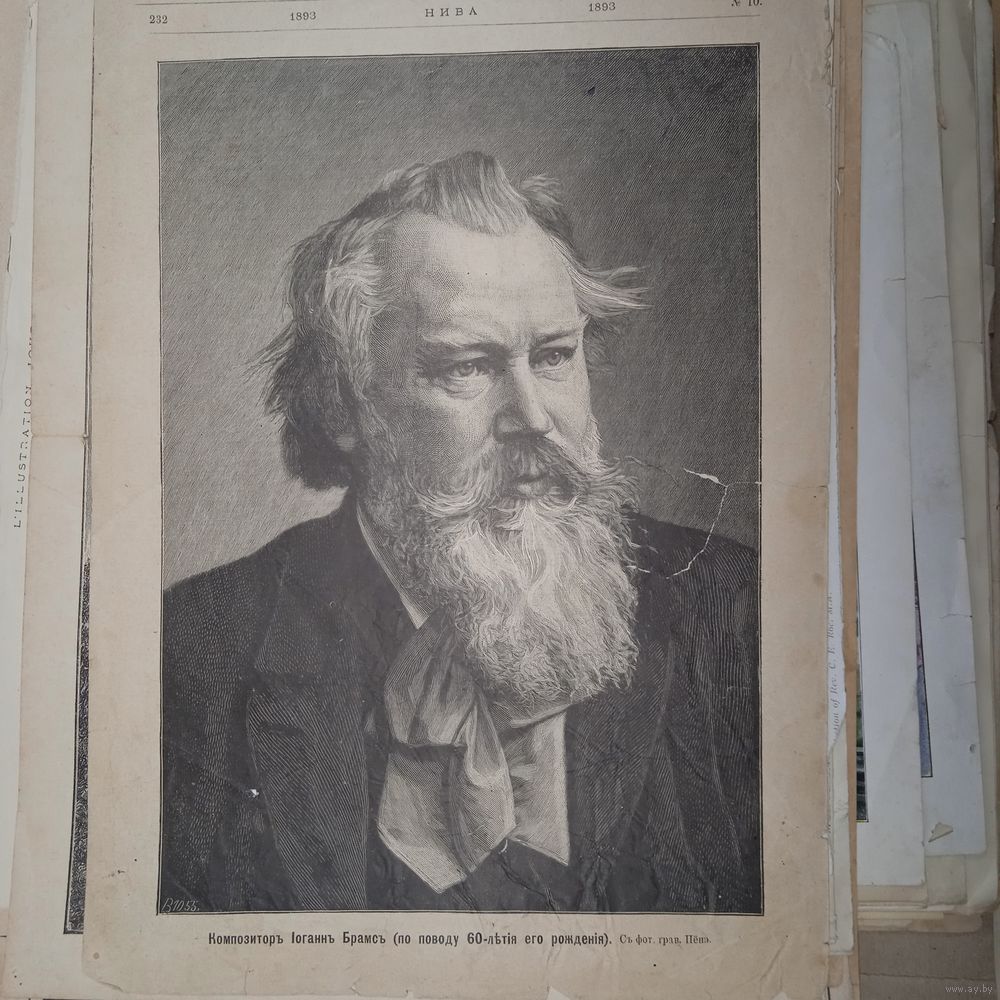 Композиторъ Иоганнъ Брам 1893г. Гравюра энциклопедическая 19-20век. 30х21см. СПБ. РАСПРОДАЖА КОЛЛЕКЦИИ.