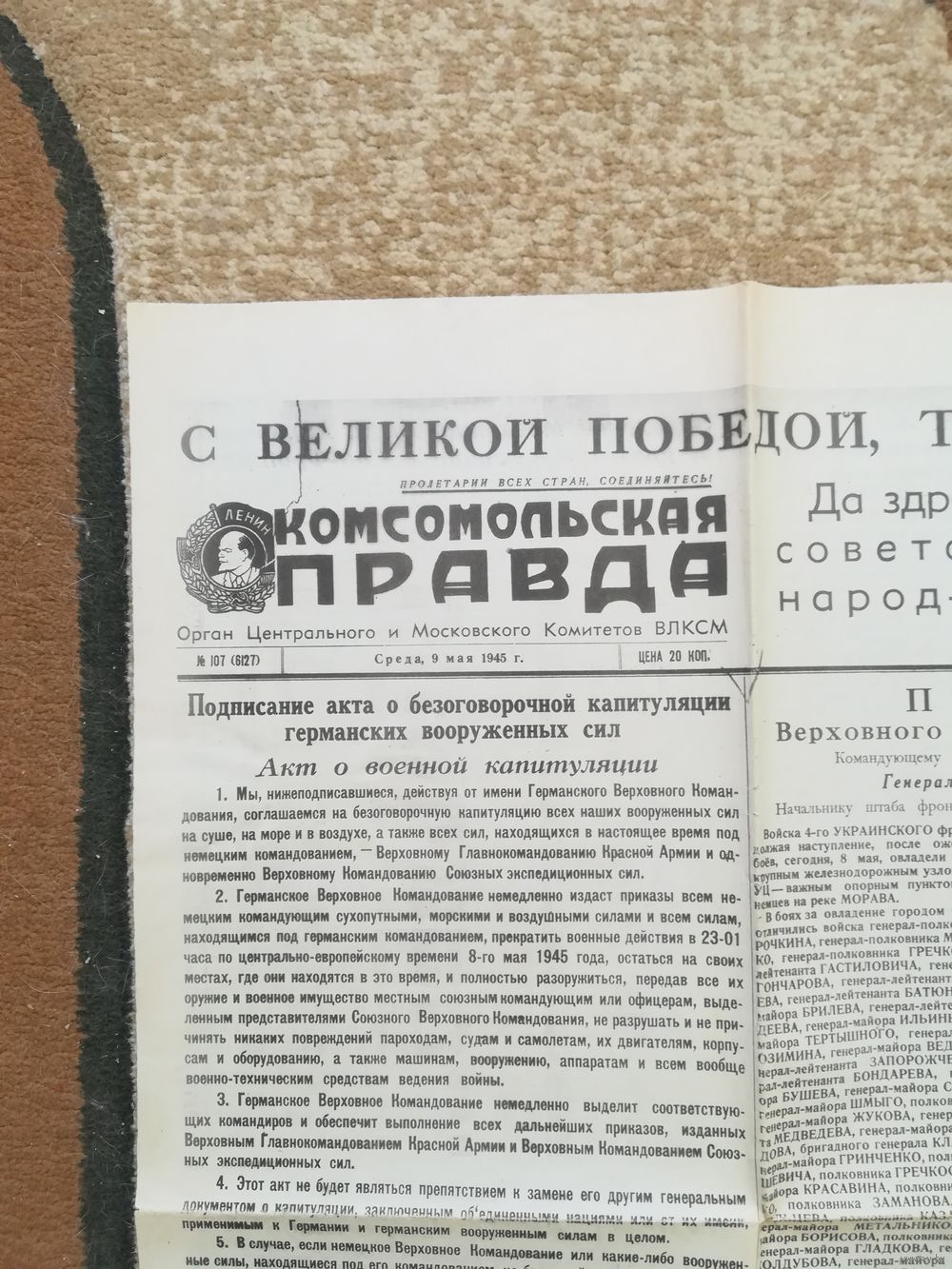 Комсомольская правда 9 мая 1945 г КОПИЯ репринт