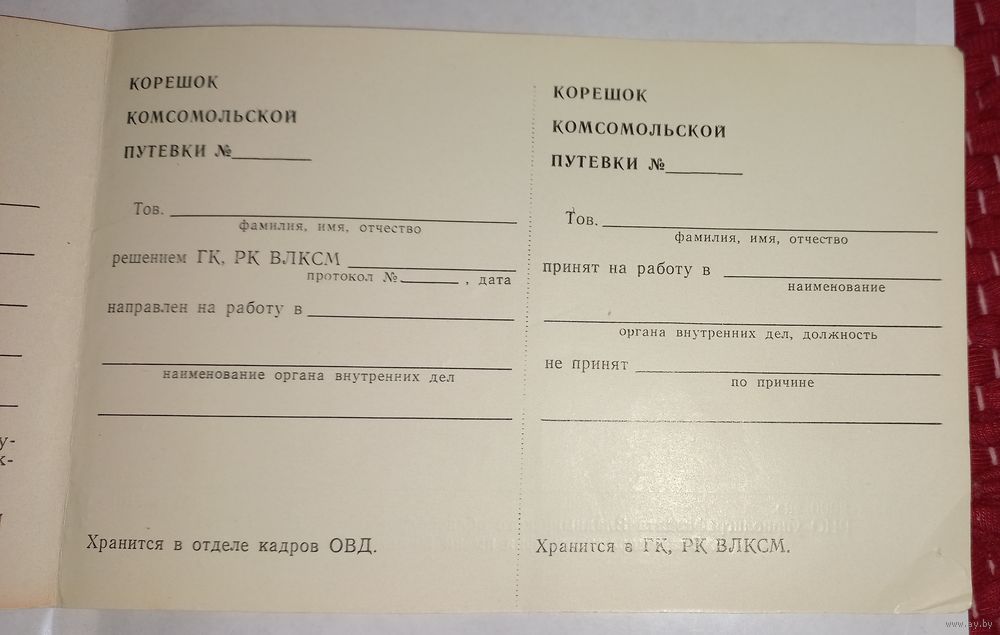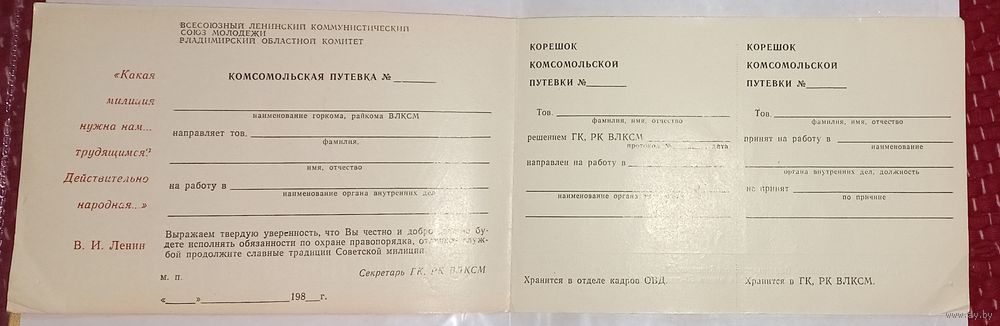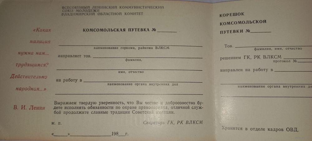 Комсомольская путёвка в милицию, мвд чистая.(А47)