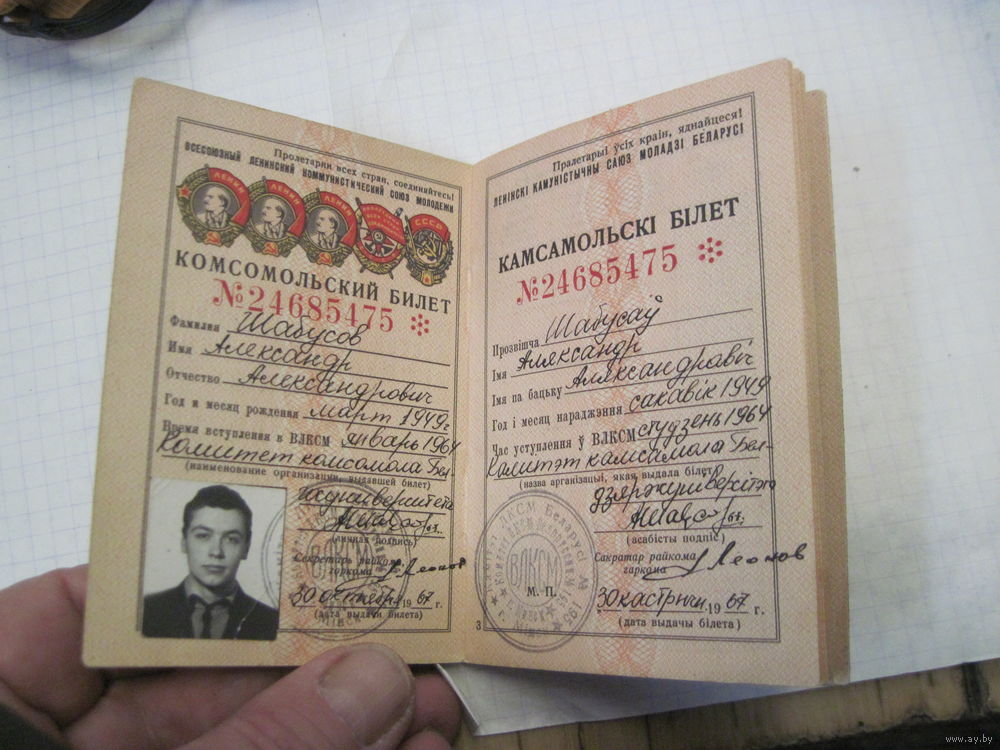 Комсомольский билет 1967 г. с рубля!