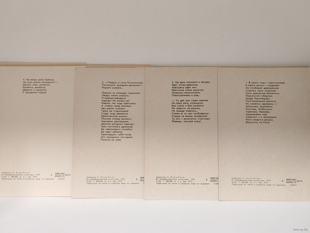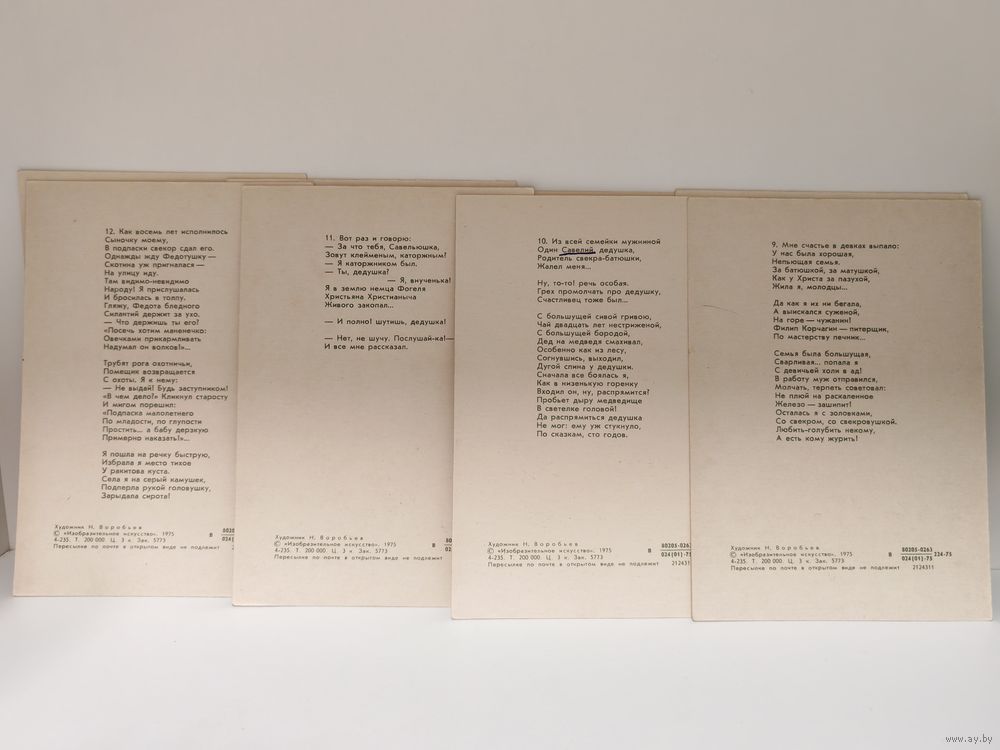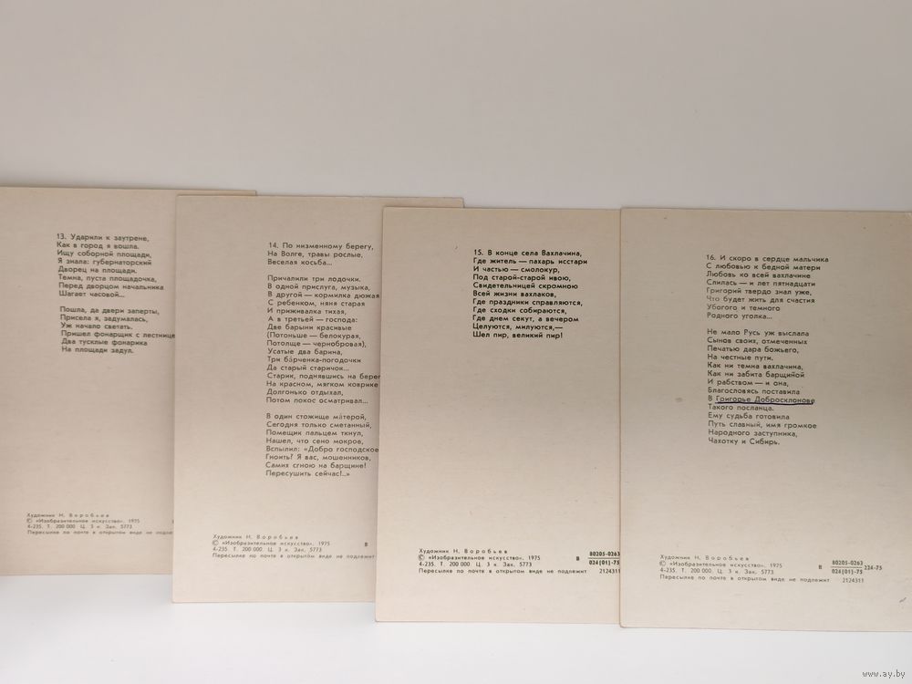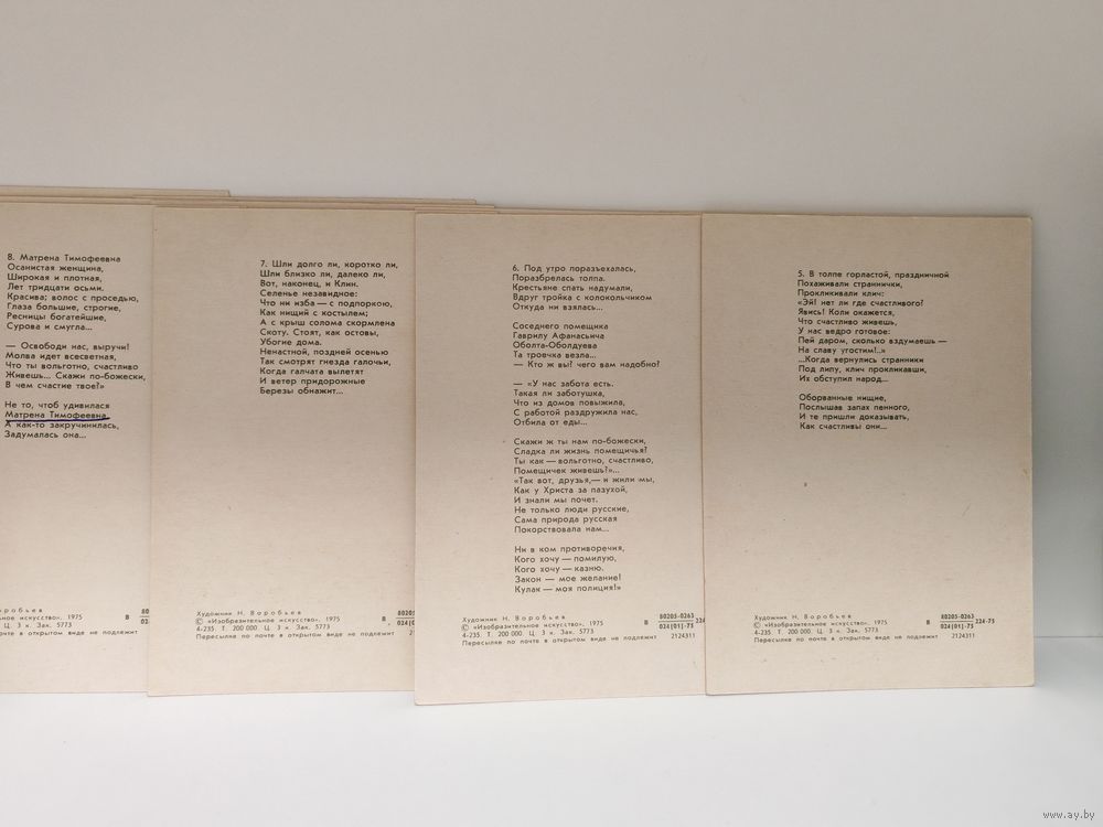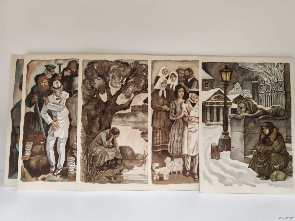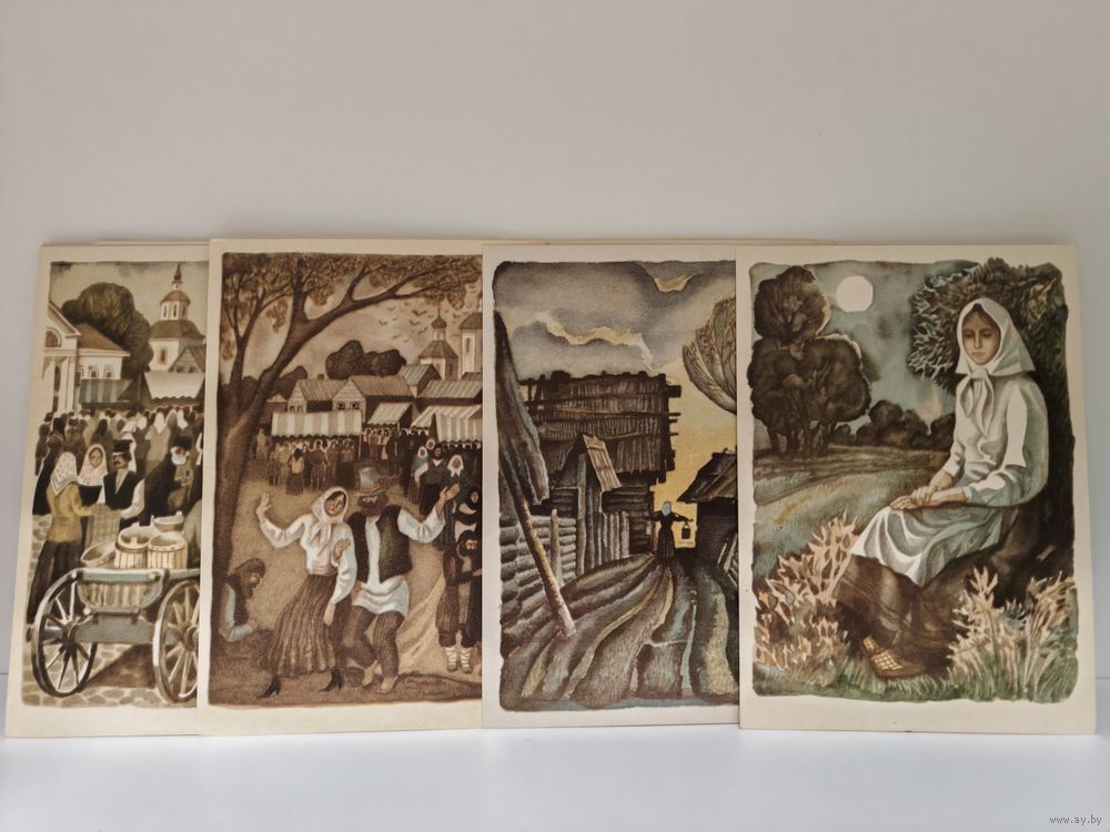 На обороте есть пометки ручкой (см.фото) - открытки использовались как дидактический материал на уроках русской литературы.