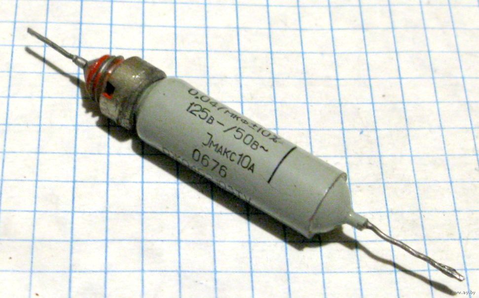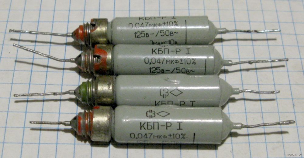 Конденсатор КБП 0,047 мкФ 125 В=/50 В~ с допуском 10% имеет корпус №1 с резьбовым креплением.