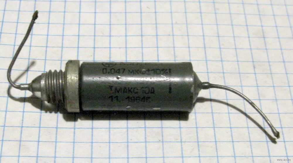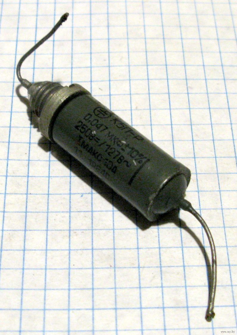 Конденсатор КБП 0,047 мкФ 250 В=/127 В~ с допуском 10% имеет корпус №2 с резьбовым креплением.
