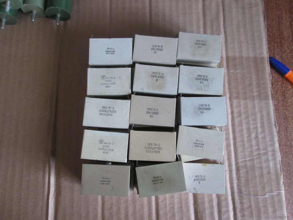 | Есть 56 ШТ. 0.1 мкф 1000 вольт 9 шт,0.068мкф 1000 вольт 47шт. | |