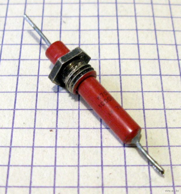Неизолированный с резьбовой втулкой керамический постоянной емкости проходной конденсатор предназначен для работы в цепях постоянного, переменного и пульсирующего токов, а также в импульсных режимах.