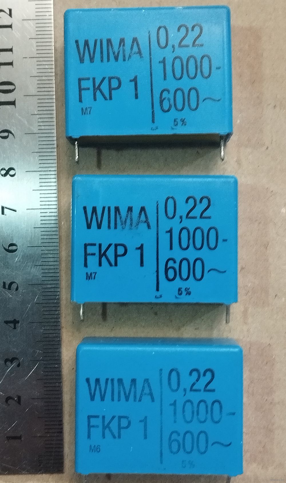 Конденсатор неполярный 0,22 мкФ 1000В.
