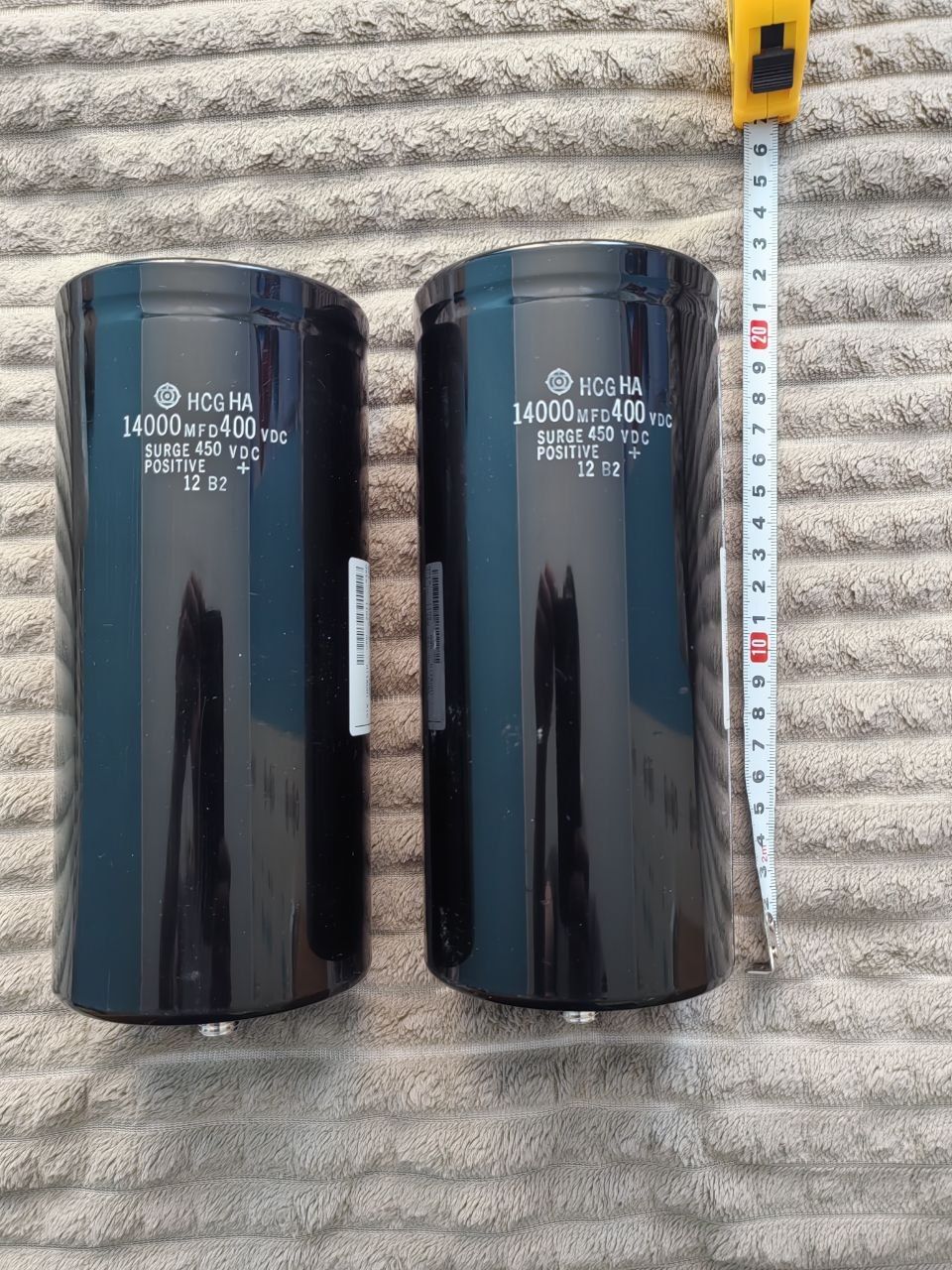 Конденсаторы 14000-400-450 волт размеры диаметр 90 ммм - длина 195 мм. Вес 1 конденсатора 1,75 кг.