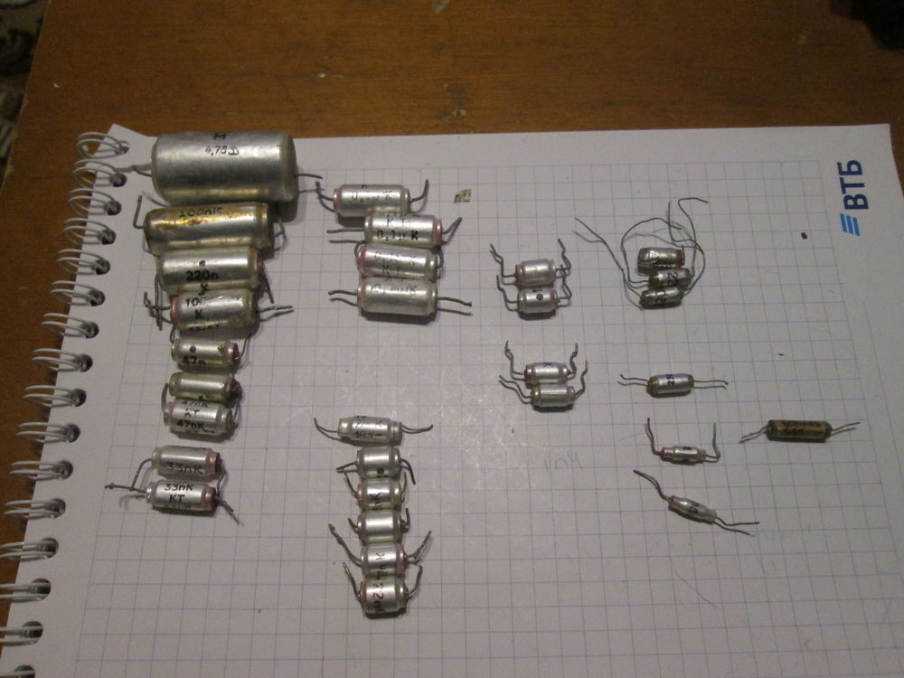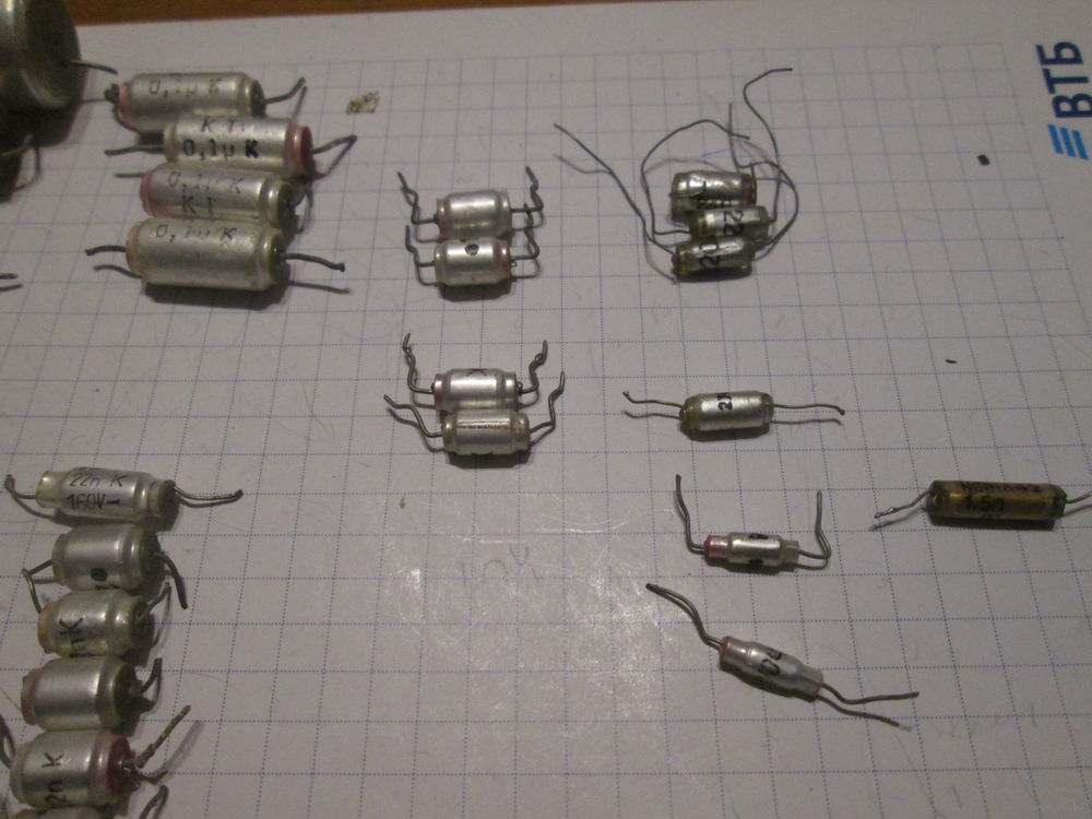 | Есть 30 шт.0.1мкф(4),1мкф(1),220п,100п(2),47п(3)33п(2),22п(6),15п(2),10п(2),3.3п,1.5п,1.0п,2200р(3),2700р. | |