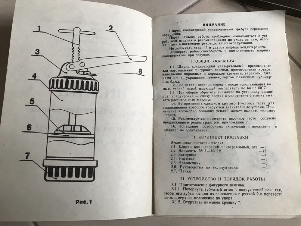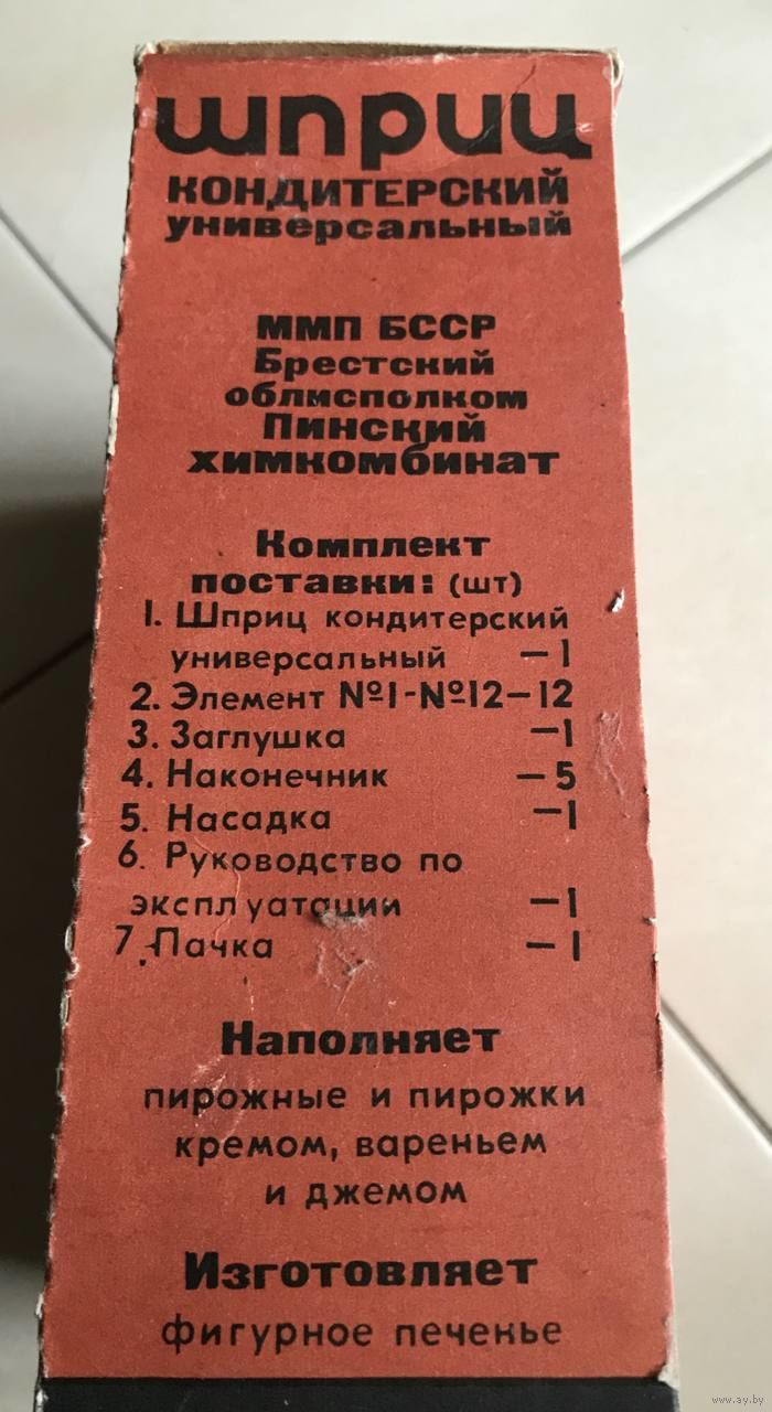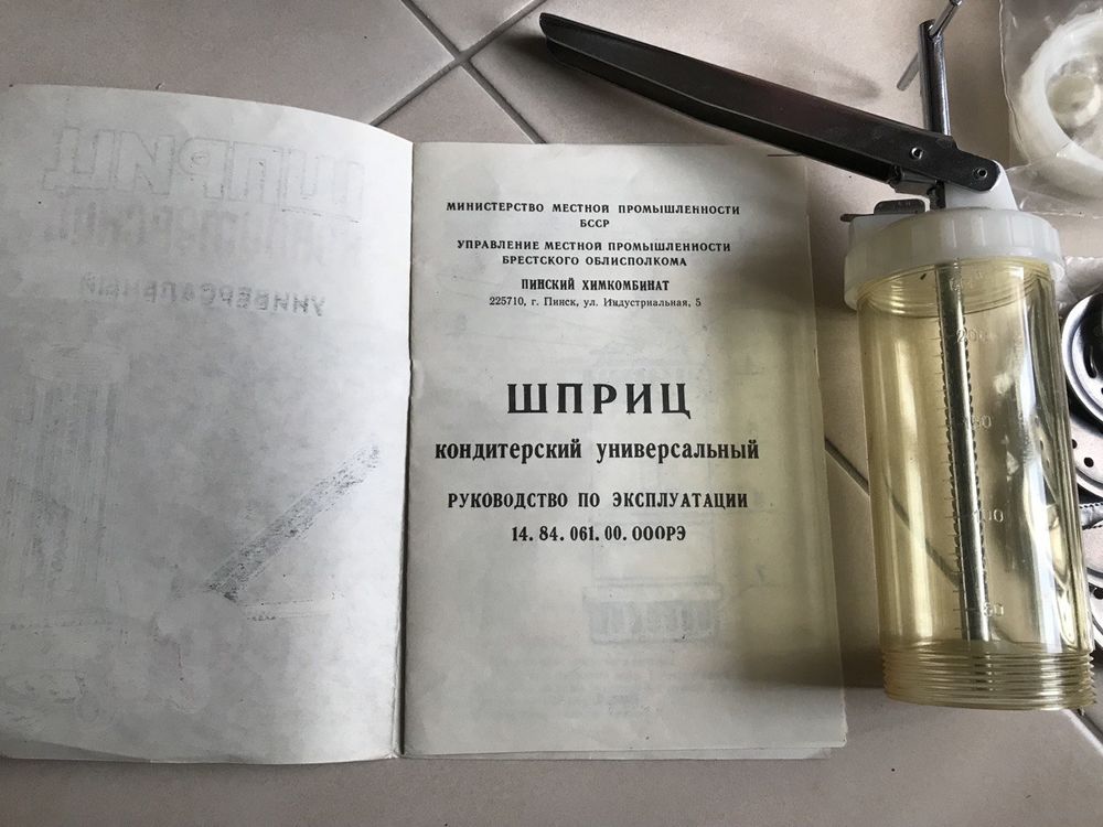 Продам кондитерский шприц-пресс производства Пинского химкомбината (БССР).Состояние: Полный заводской комплект, в использовании не был (новый, складское хранение). Коробка, инструкция — всё сохранено.Что в комплекте: