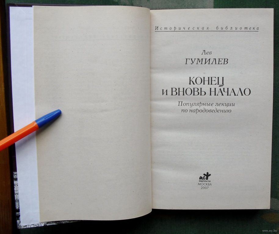 Одно из самых популярных произведений Гумилёва «Конец и вновь начало» раскрывает его знаменитую теорию пассионарности и объясняет закономерности возникновения и развития этносов, гибели и крушения великих империй. По мнению ученого, этносы в своем развитии проходят определенные ступени, на каждой из которых имеют свои особенности культуры, науки, общественного уклада, социальных и правовых институтов. Положения уникальной теории пассионарности, созданной ученым, представлены в занимательной форме и проиллюстрированы примерами из жизни народов античности и средневековья. Особое внимание уделено выдающимся стратегам и олигархам. Яркая и необычная книга Гумилёва основана на обширном историческом материале и изложена в легкой и увлекательной форме.