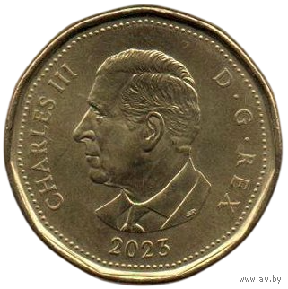 Конфедерация Канада. 1 доллар 2023. UNC. Король Карл (Чарльз) III. Фауна. Гагара.