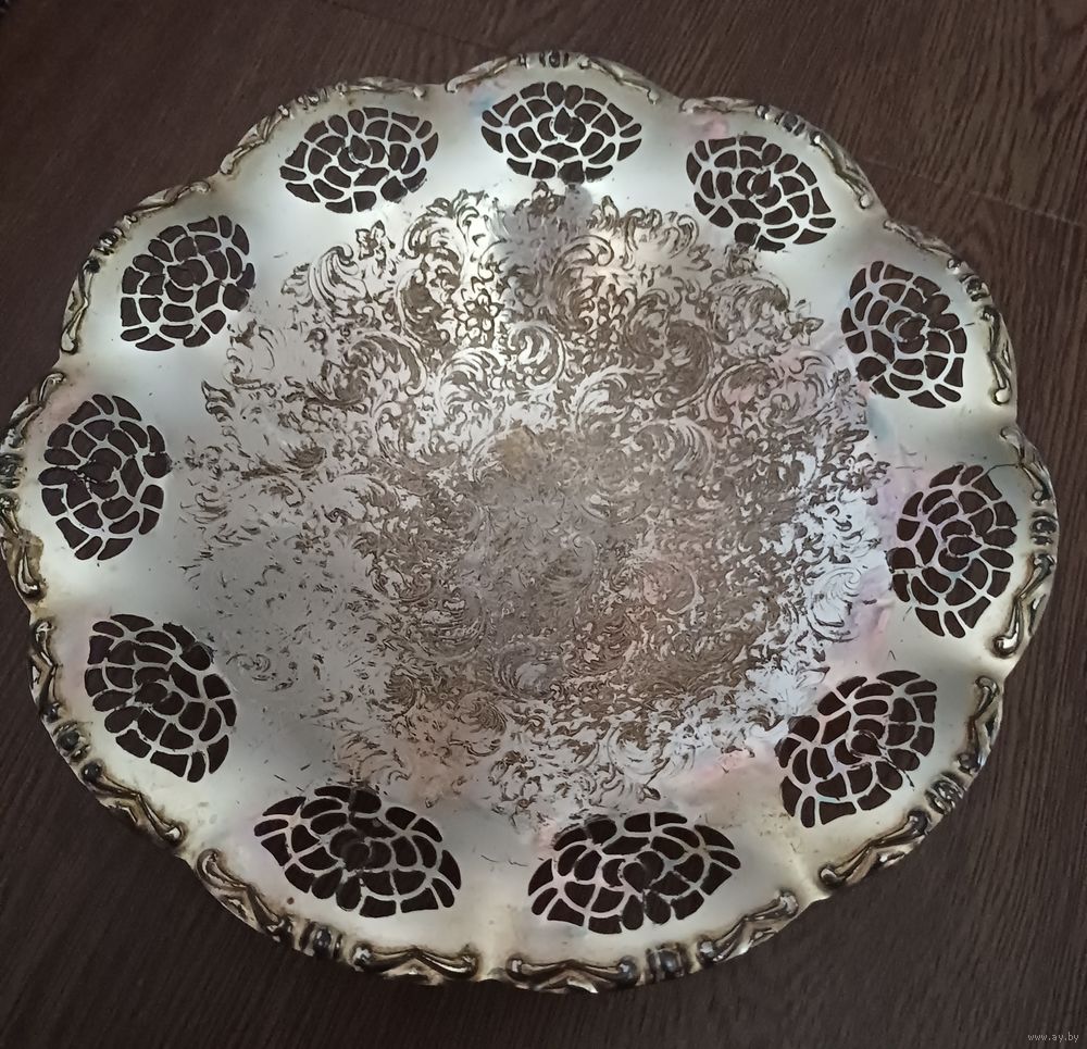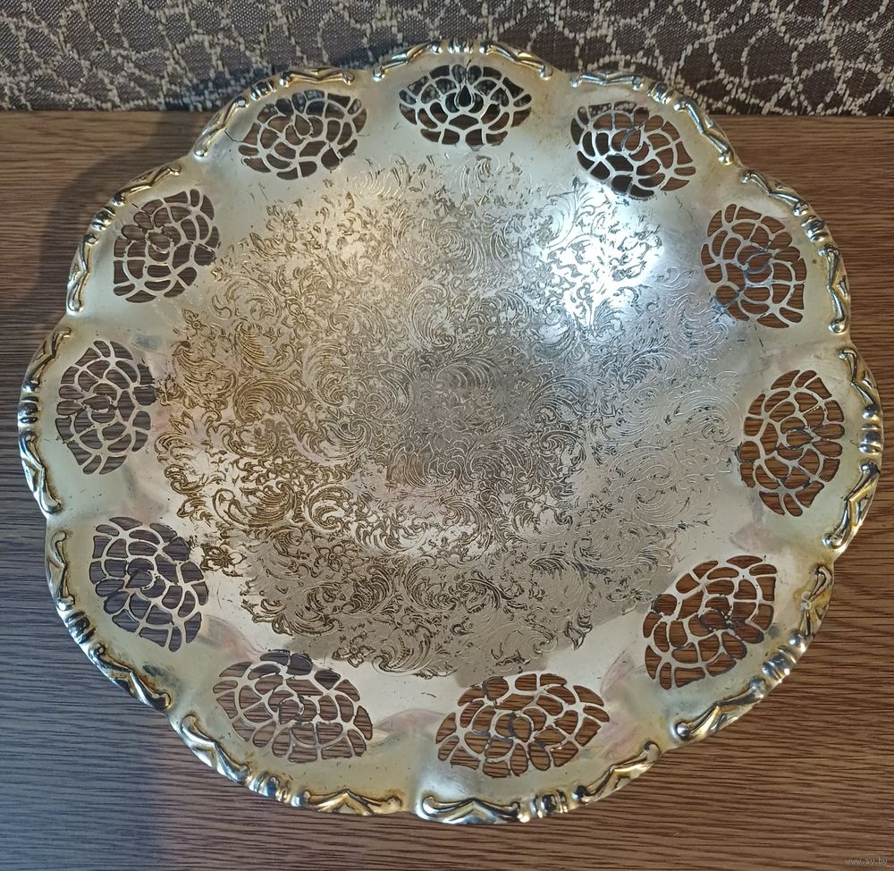 Конфетница. Англия. Диаметр 20 см . Клейма нет. Латунь, серебрение