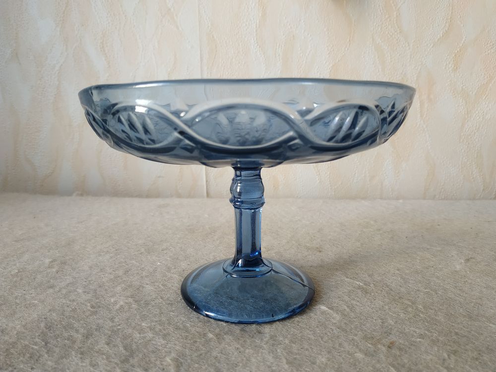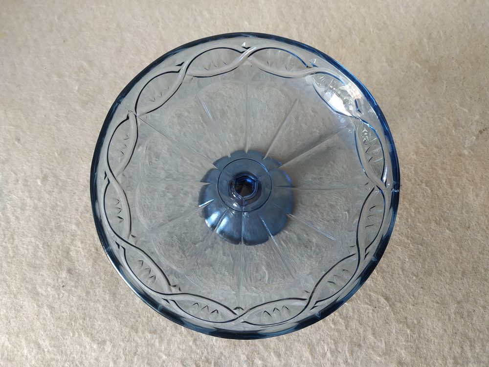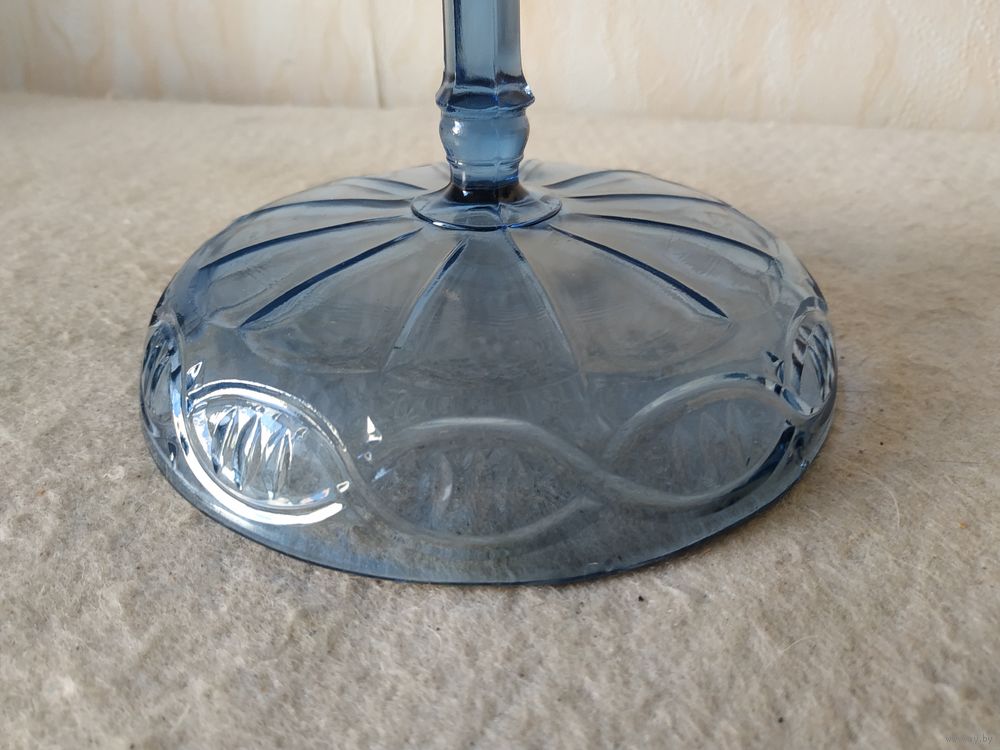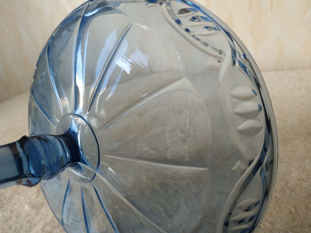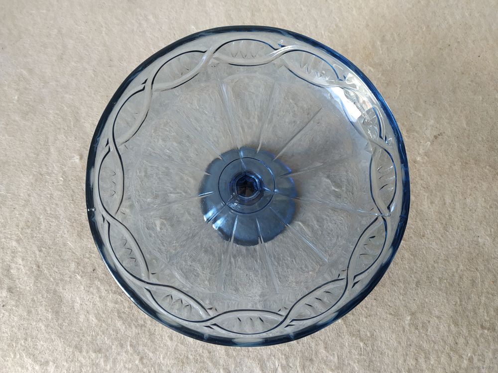 Материал изготовления конфетницы - стекло. Размеры конфетницы: диаметр чаши - 16,5 см ; диаметр основания - 7,7 см . Высота конфетницы - 11,5 см . Без сколов и трещин. Снизу, на чаше конфетницы, имеется надпись "С-З НЕМАН".