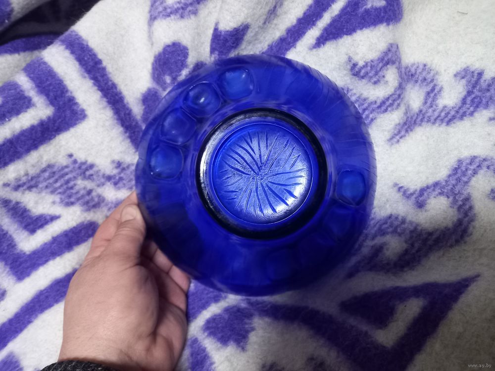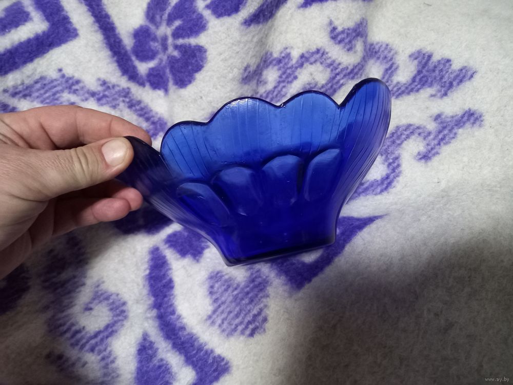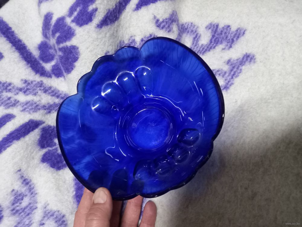 Конфетница, фруктовница, салатник СССР. Синее стекло 20 см. разумный торг