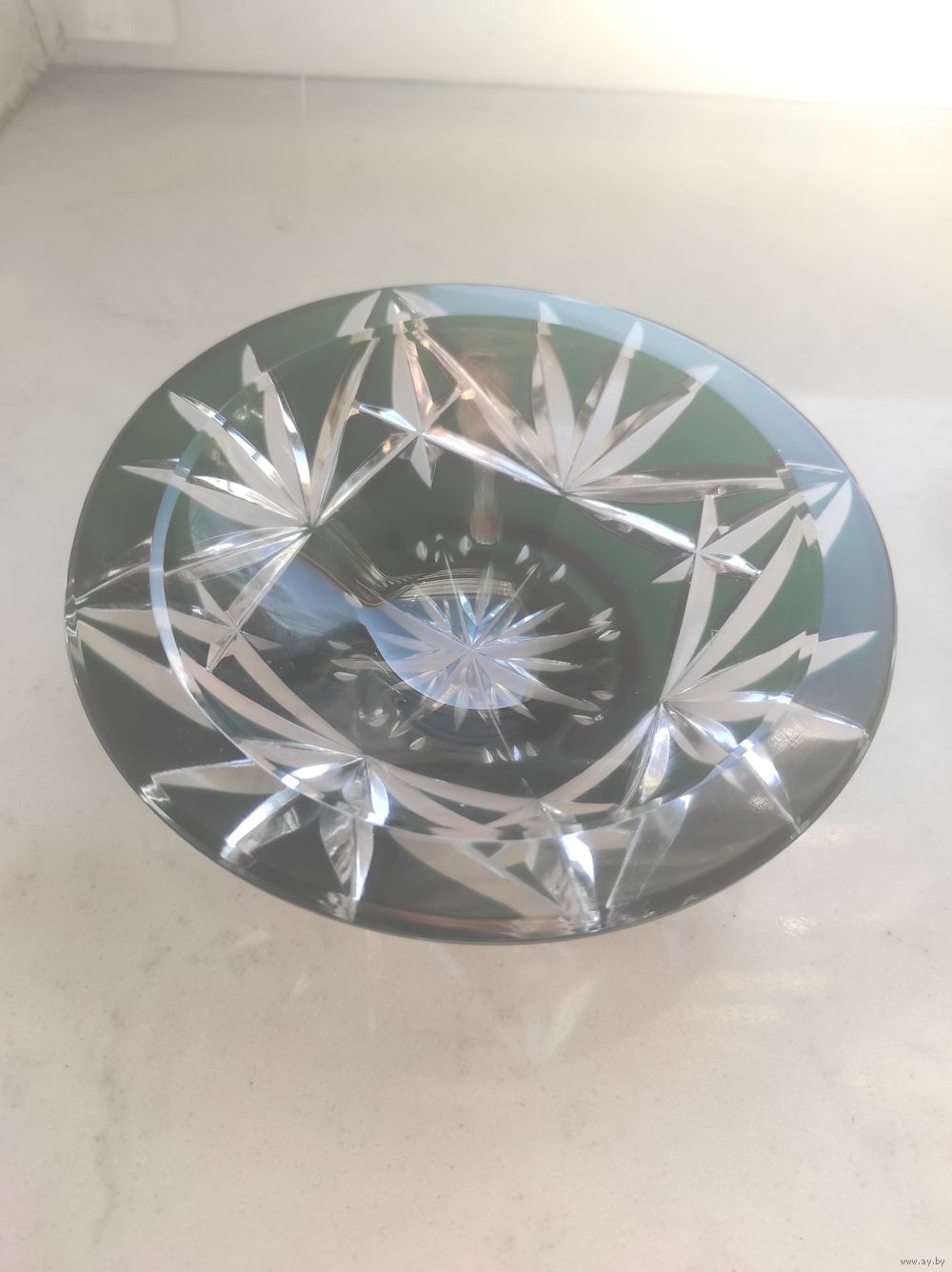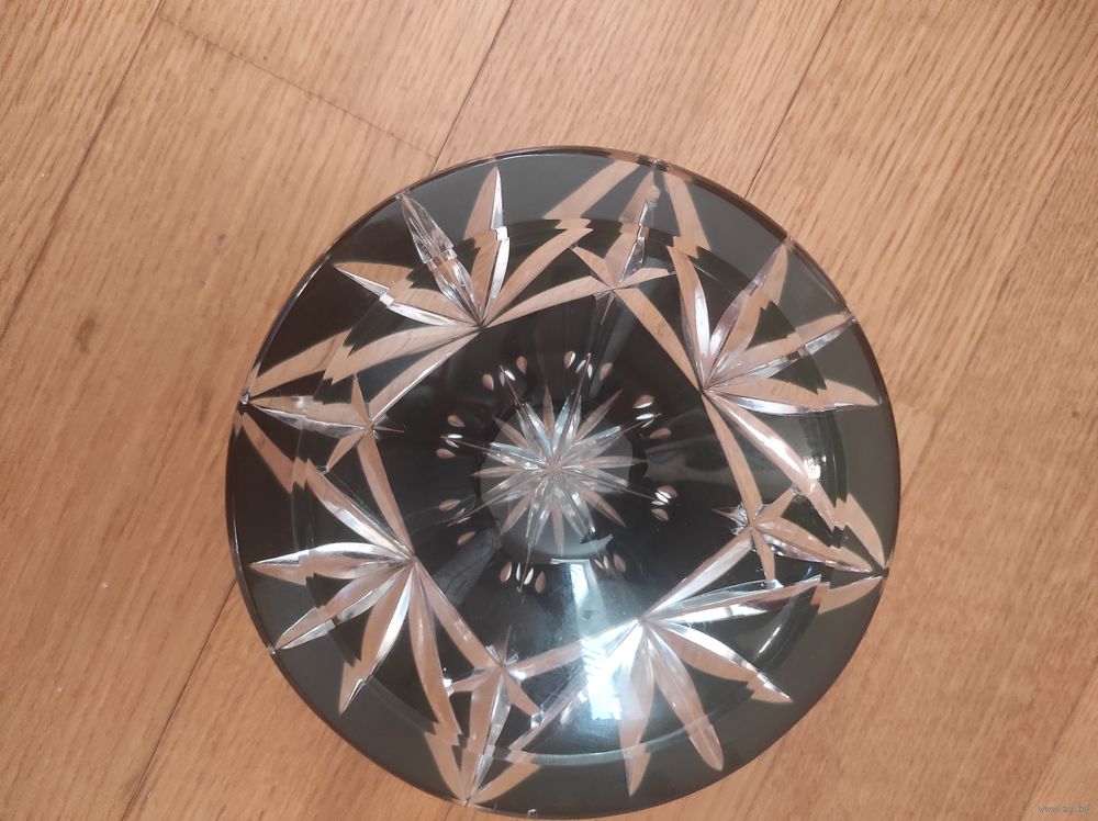 Винтажная хрустальная конфетница с алмазными гранями. Материал -цветной кобальтовый хрусталь. Цвет практически чёрный. Декор: Геометрический узор, выполненный техникой алмазных граней. Диаметр-13,5 см. Предположительно Bohemia, Чехия. 70-е годы.
