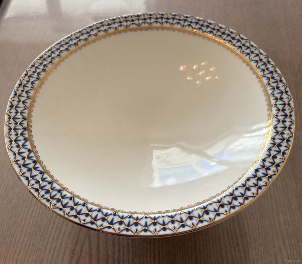 Конфетница . Кобальтовая сетка , фарфор , деколь , золочение . ЛФЗ .