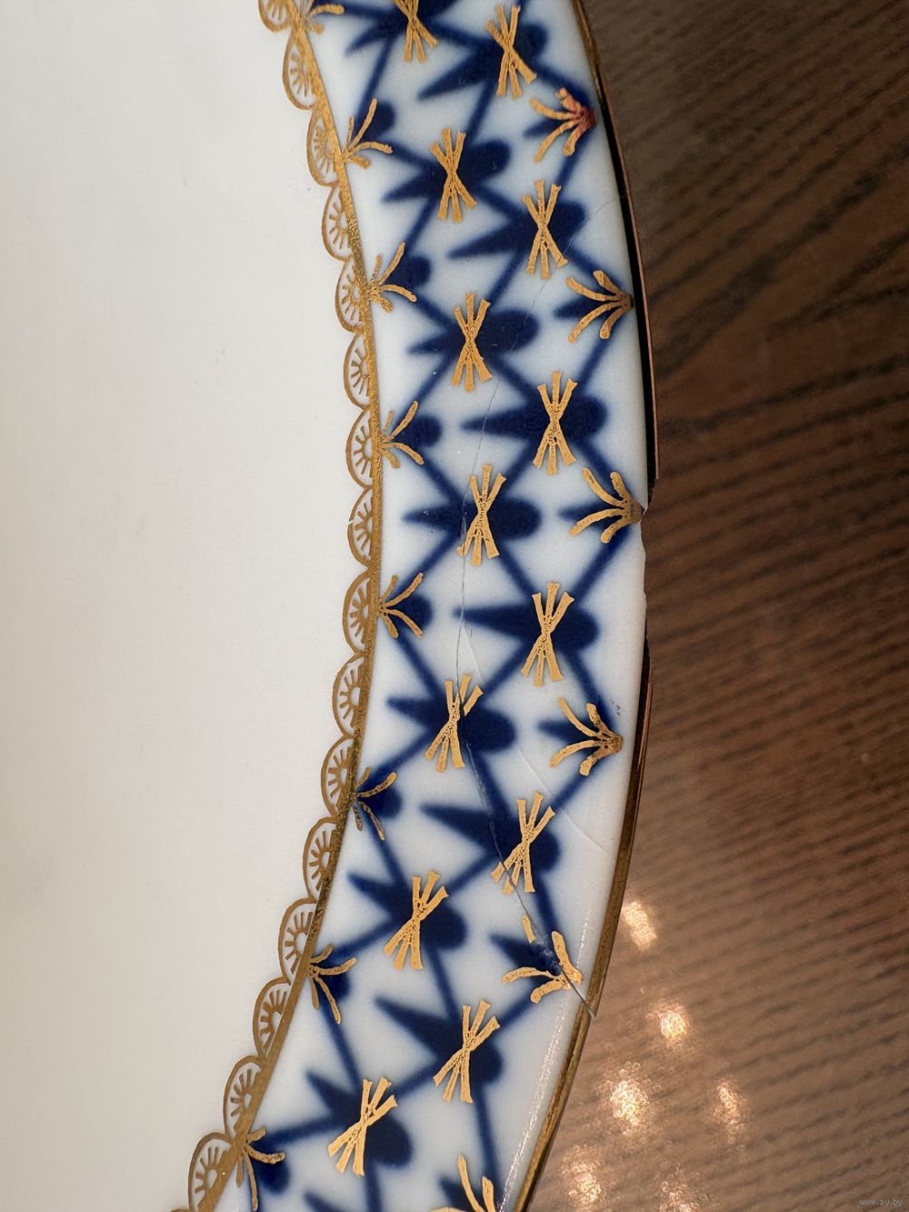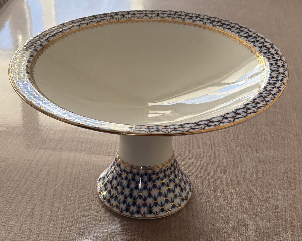 Конфетница . Кобальтовая сетка , фарфор , деколь , золочение . ЛФЗ .