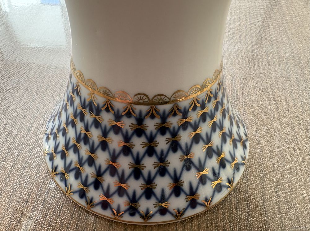 Конфетница . Кобальтовая сетка , фарфор , деколь , золочение . ЛФЗ .