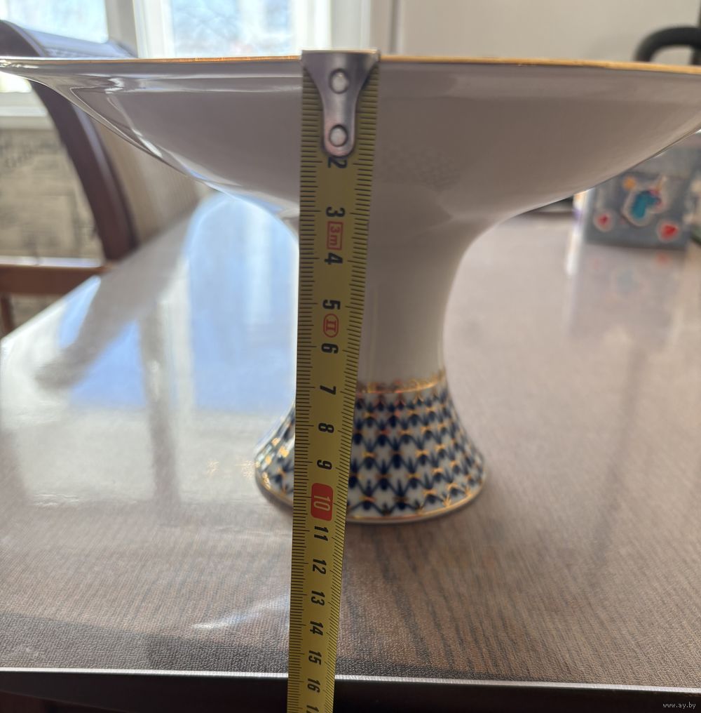 Конфетница . Кобальтовая сетка , фарфор , деколь , золочение . ЛФЗ .