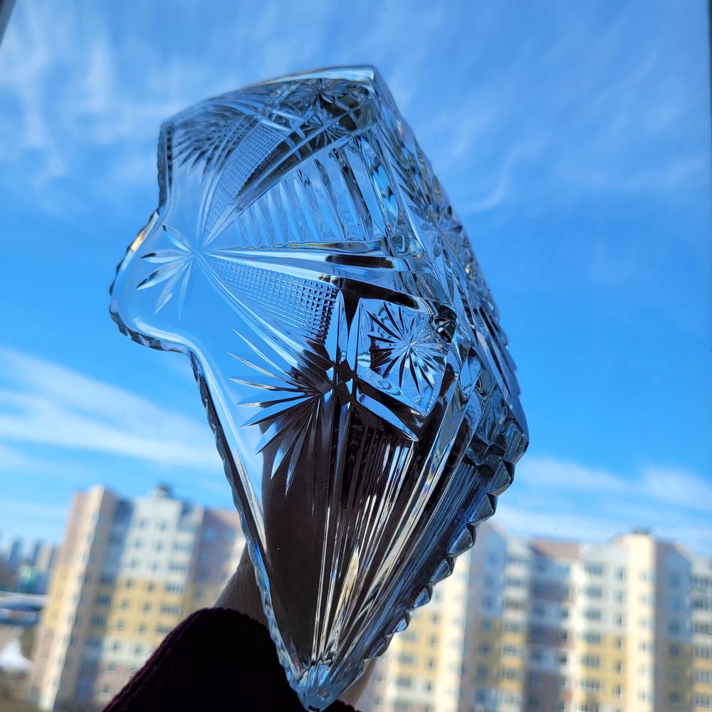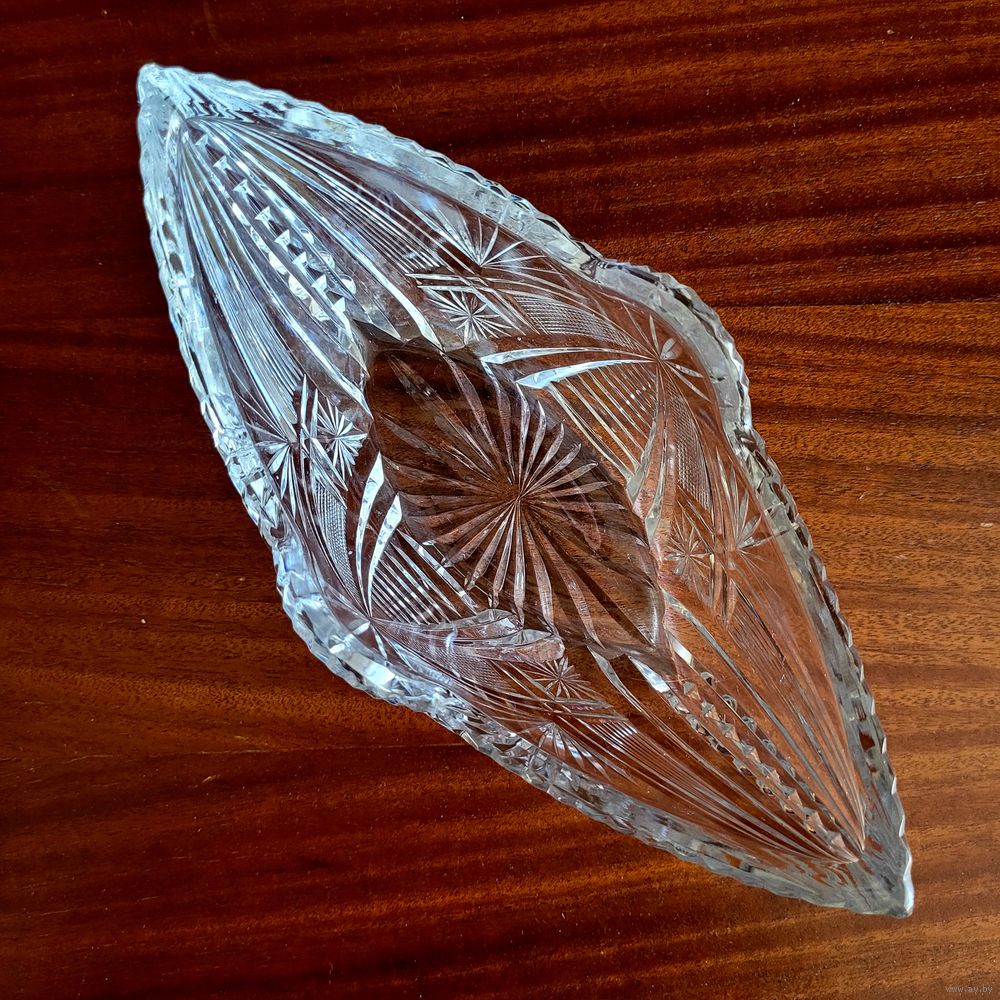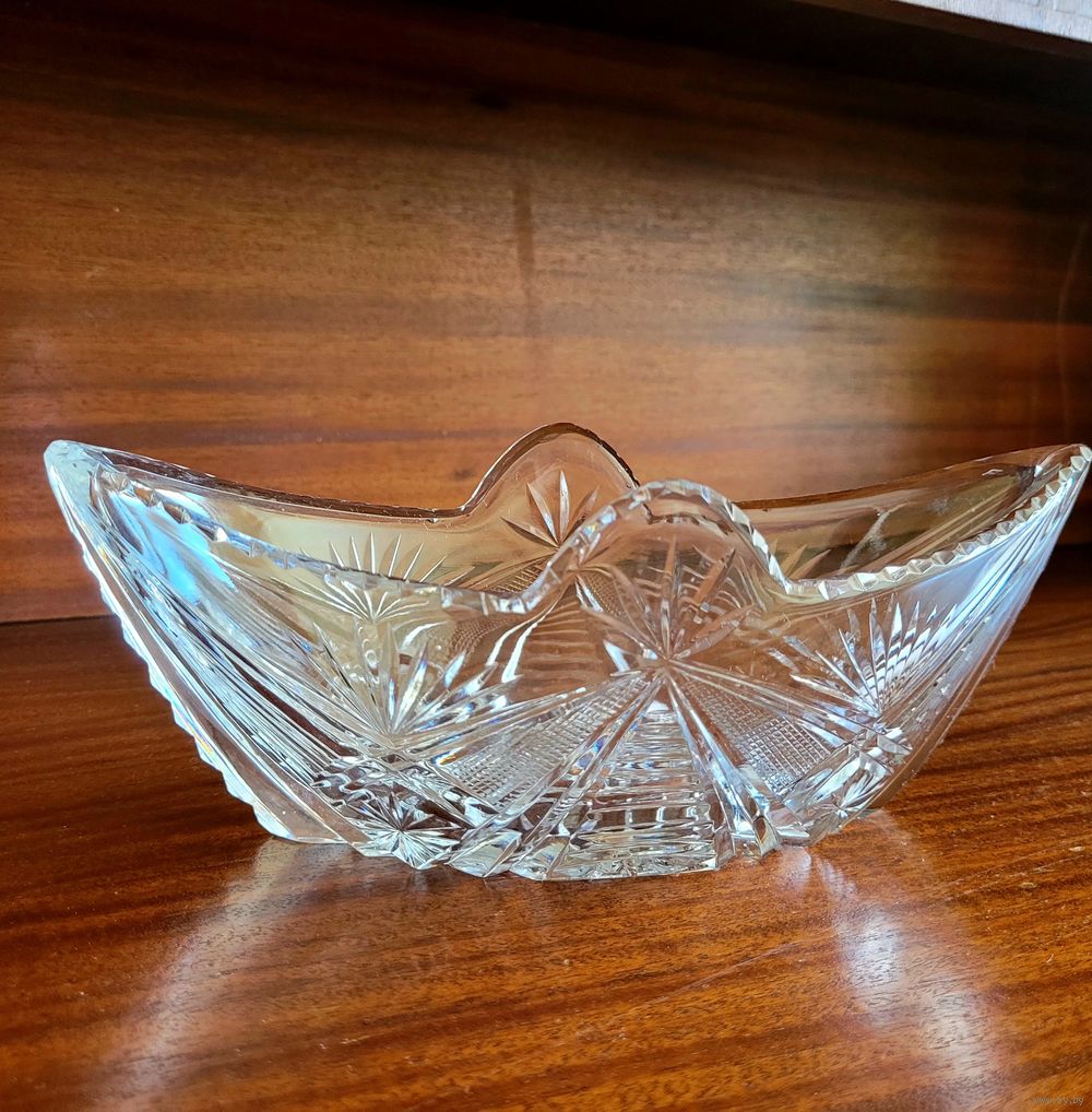 Хрустальная ладья, 24×11 см, высота 9 см, алмазная грань. Качественный хрусталь советского периода. Борисовский хрустальный завод. Ваза, которую можно считать его символом. Завод уже прекратил своё существование.