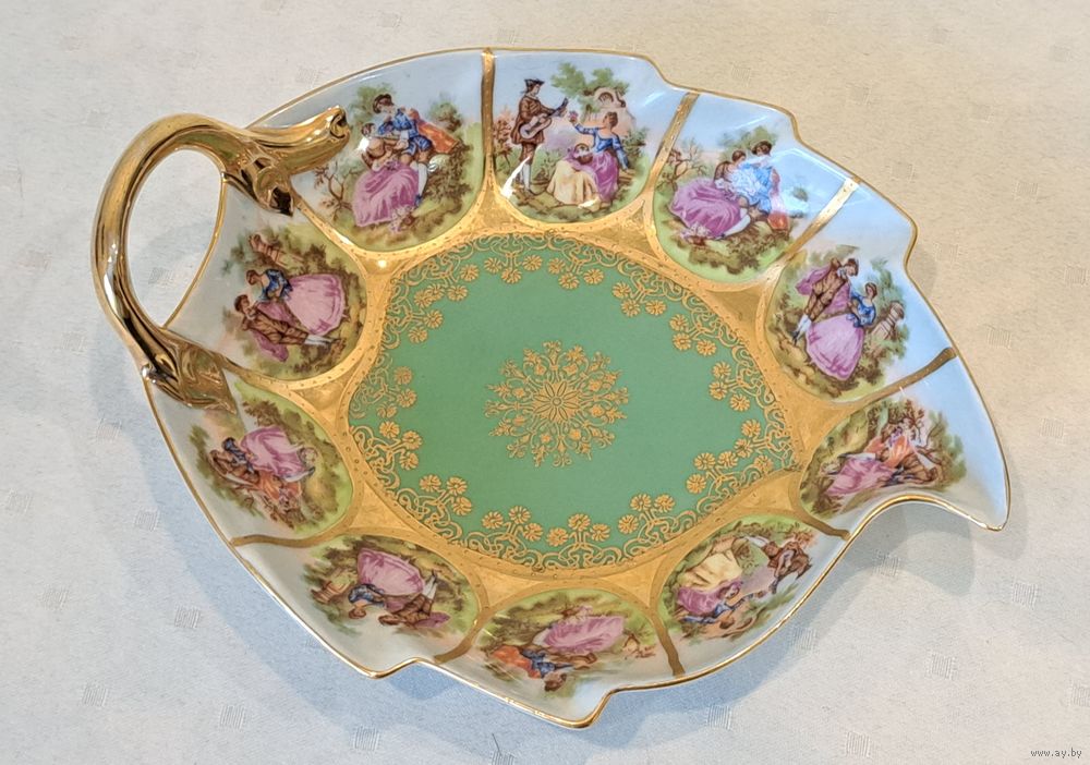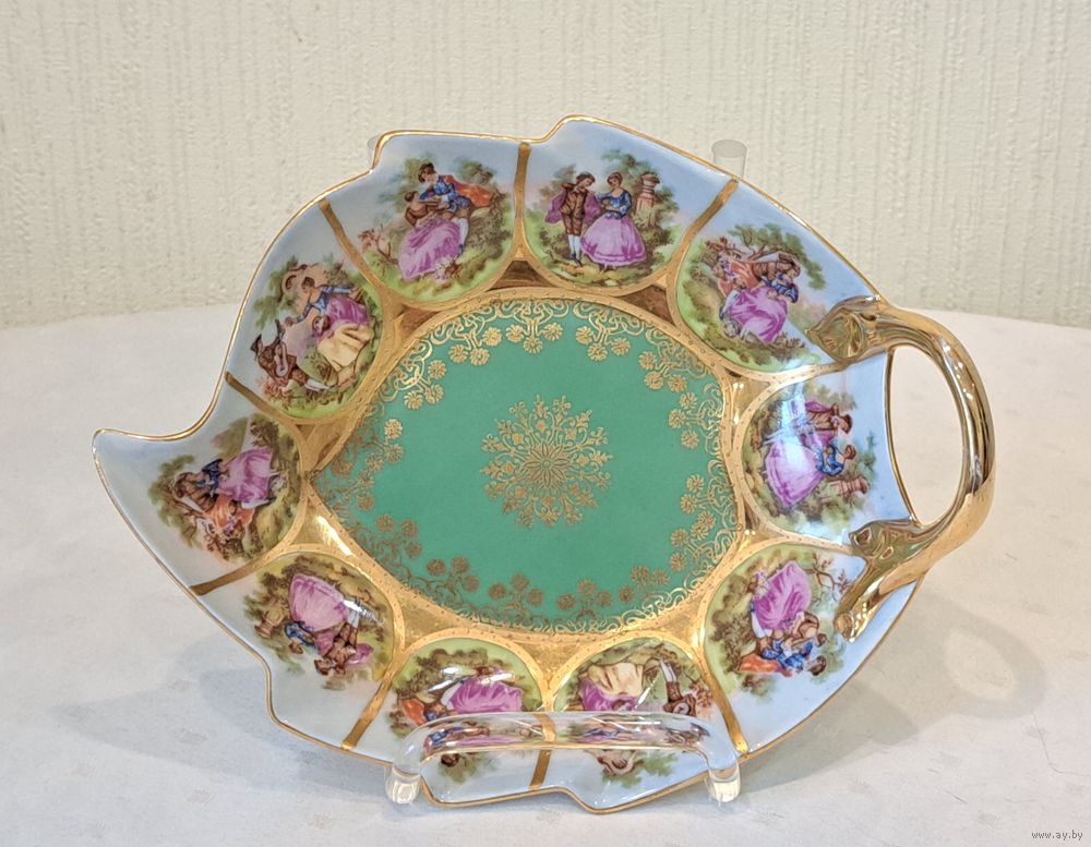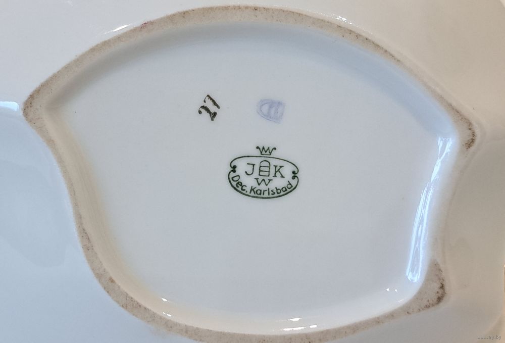 Конфетница Мадонна фарфор золочение ручная роспись JWK Dec. Karlsbad Bavaria Германия 1930 - 1945 гг., 19.5 х 15 х 3 см., состояние - см. фото. В настоящее время Карлсбад - Карловы Вары, Чехия.