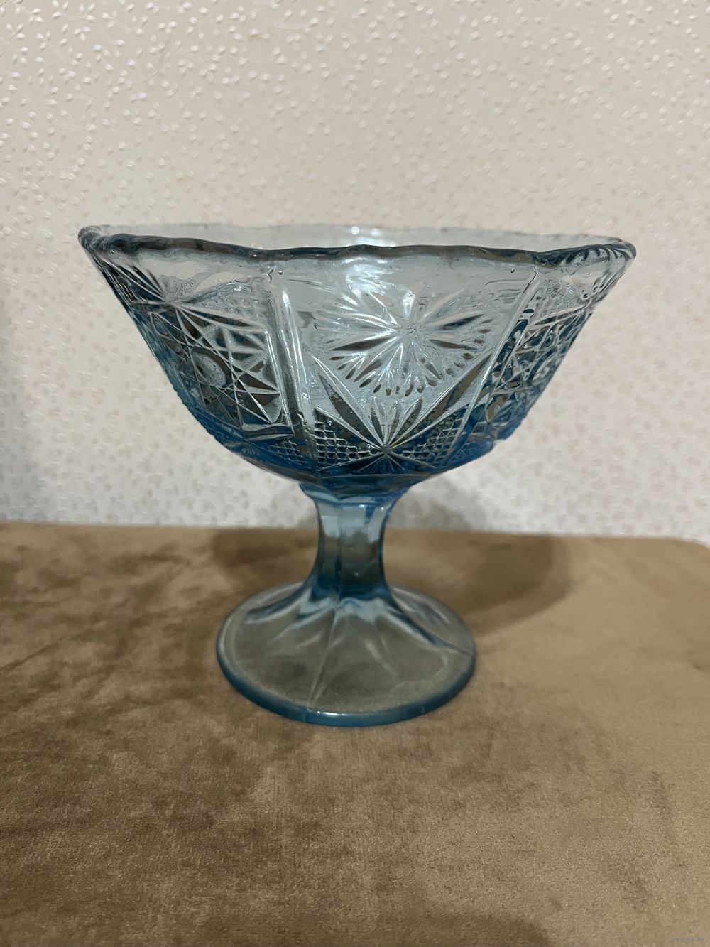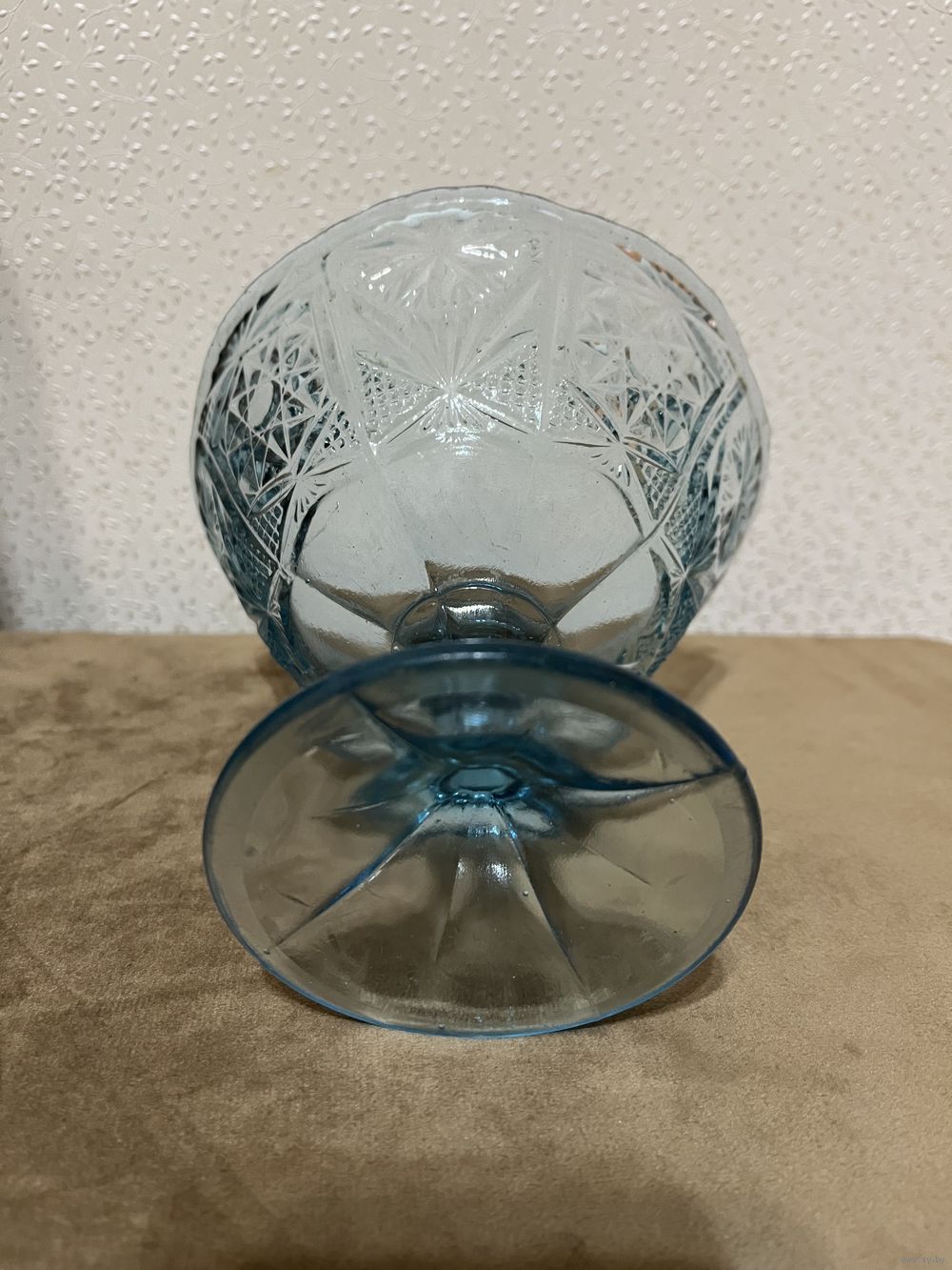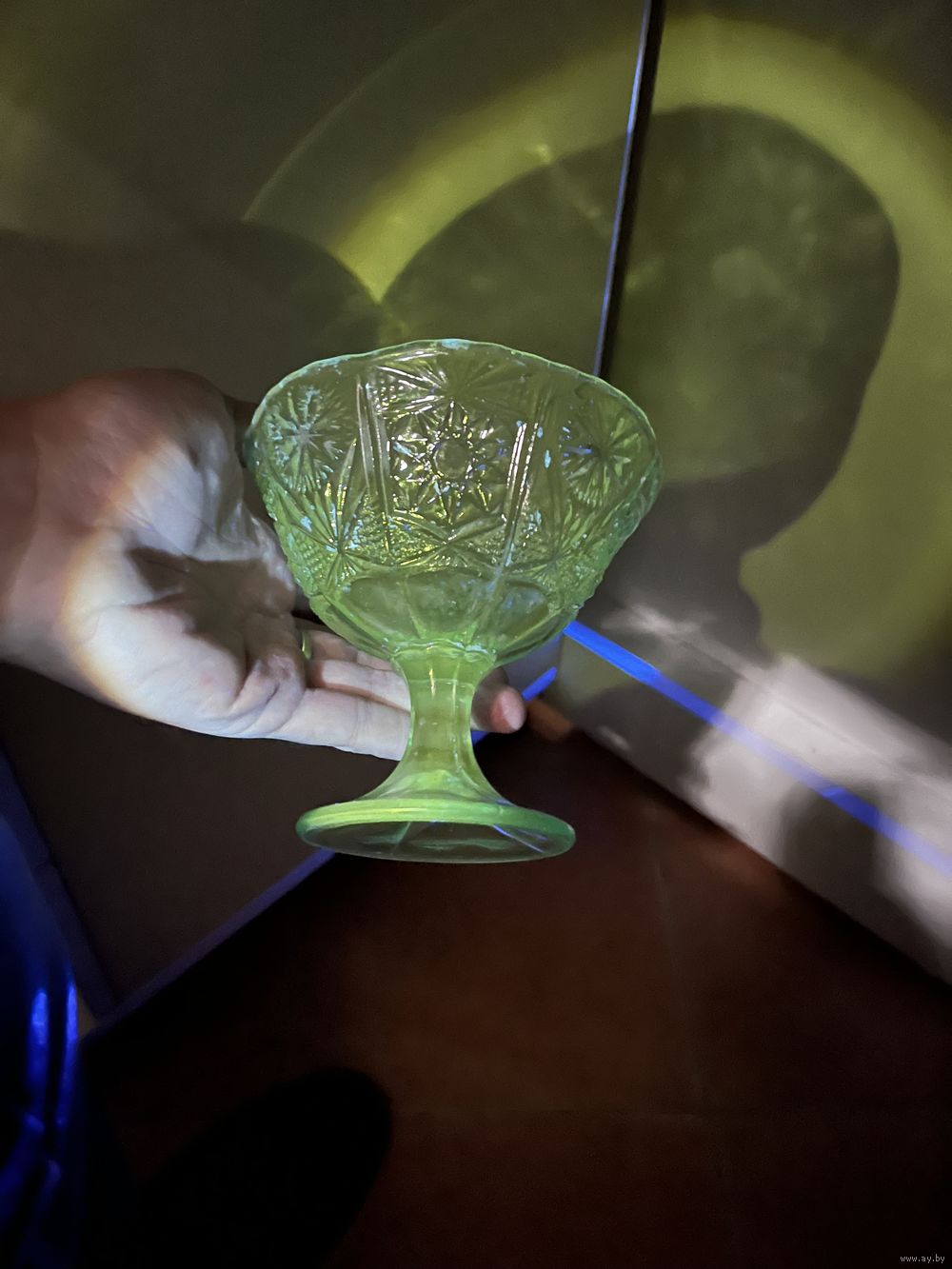 Конфетница. Старый НЕМАН. Урановое стекло. Высота 13 см. Диаметр 14.5 см.