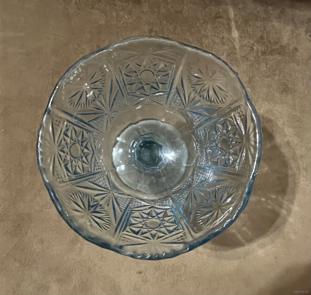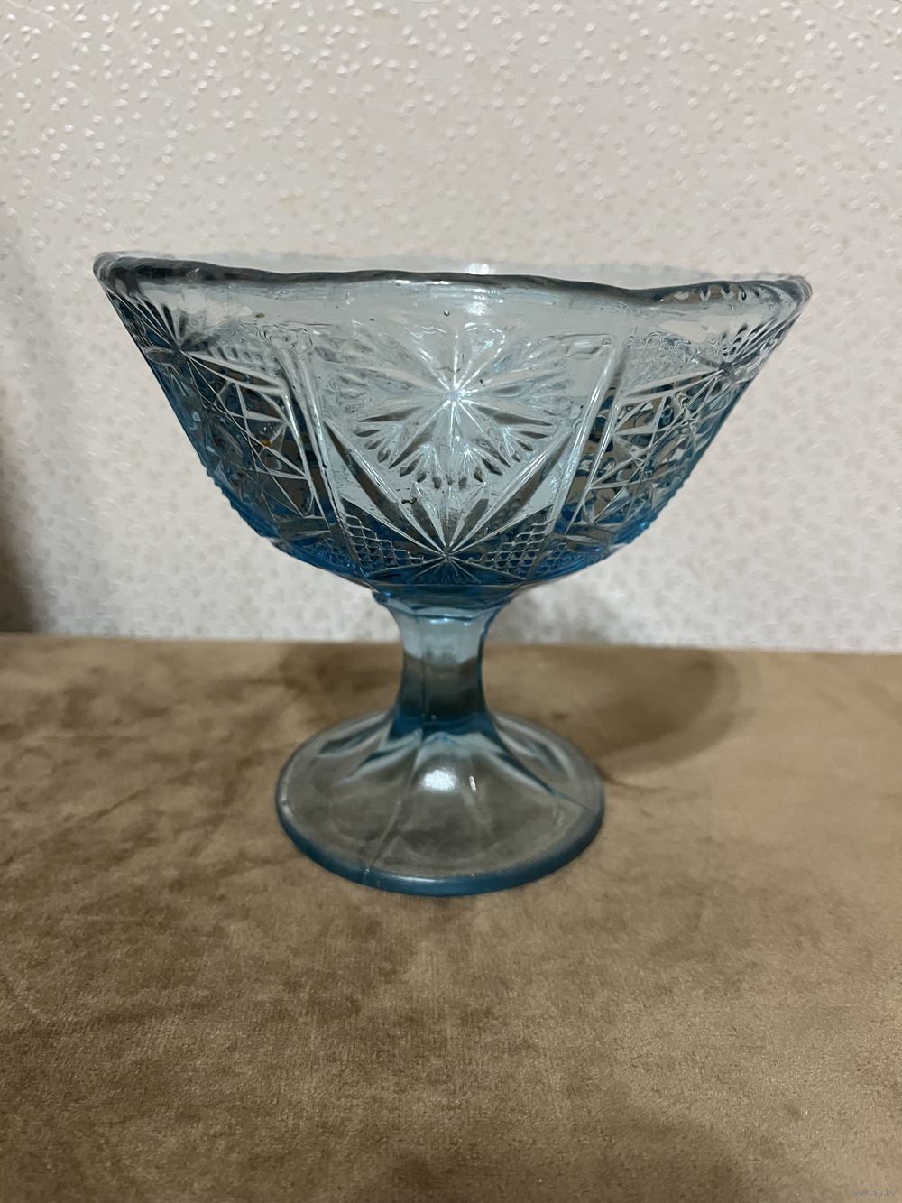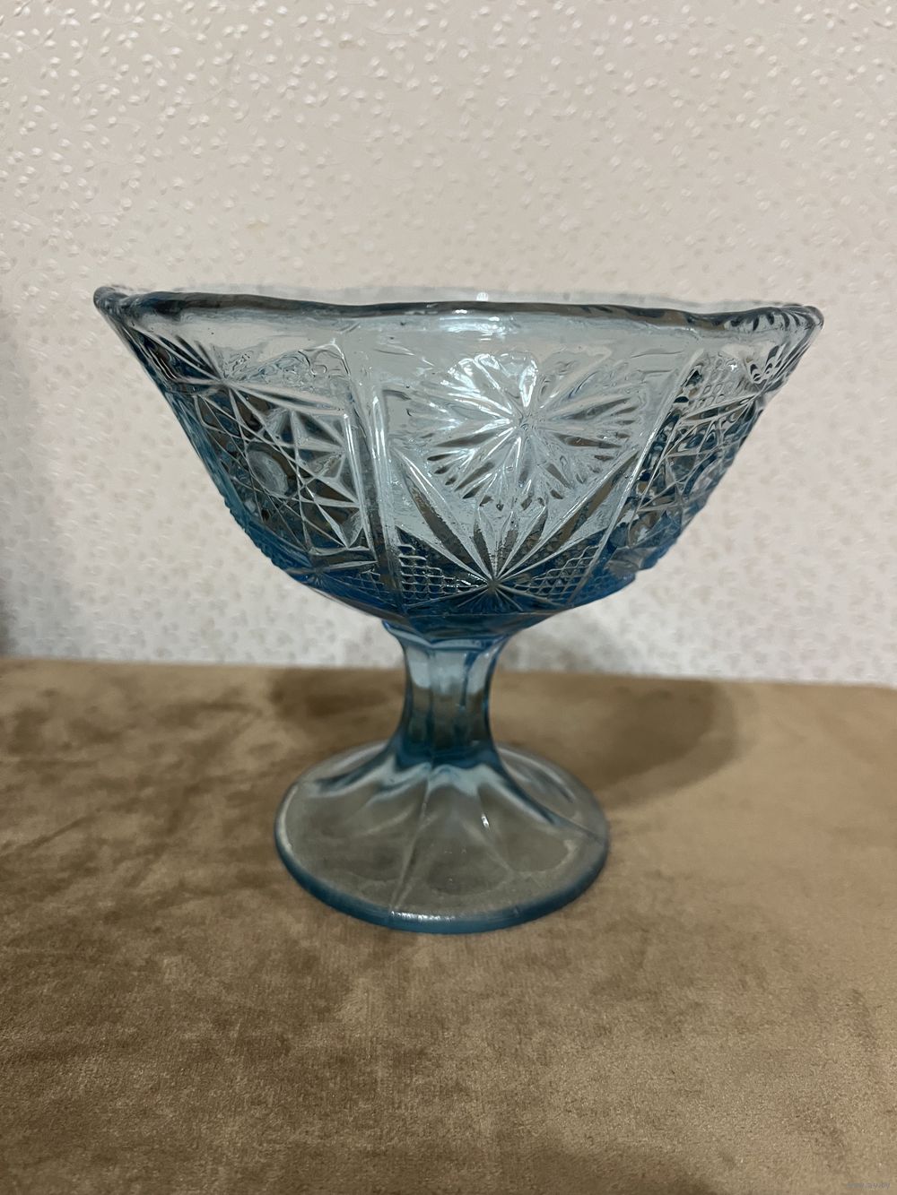 Конфетница. Старый НЕМАН. Урановое стекло. Высота 13 см. Диаметр 14.5 см.