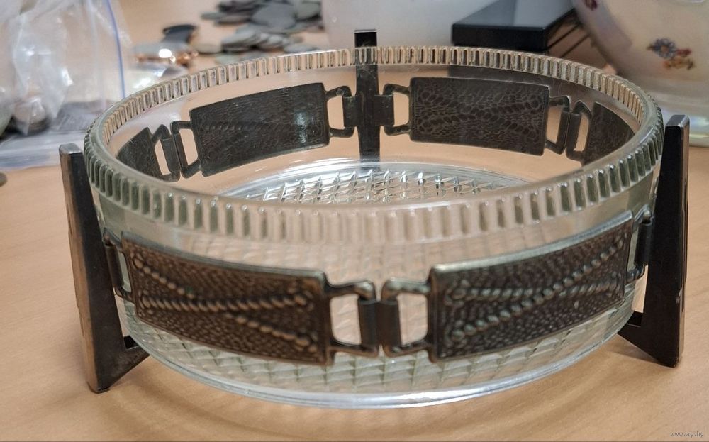 Конфетница, стекло, мельхиор. СССР. 15 см
