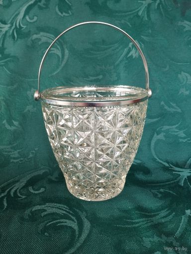 | Высота 12 см, диаметр верхний 11 см, диаметр нижний 7 см. По верхнему ободку имеются едва заметные щербины. | |